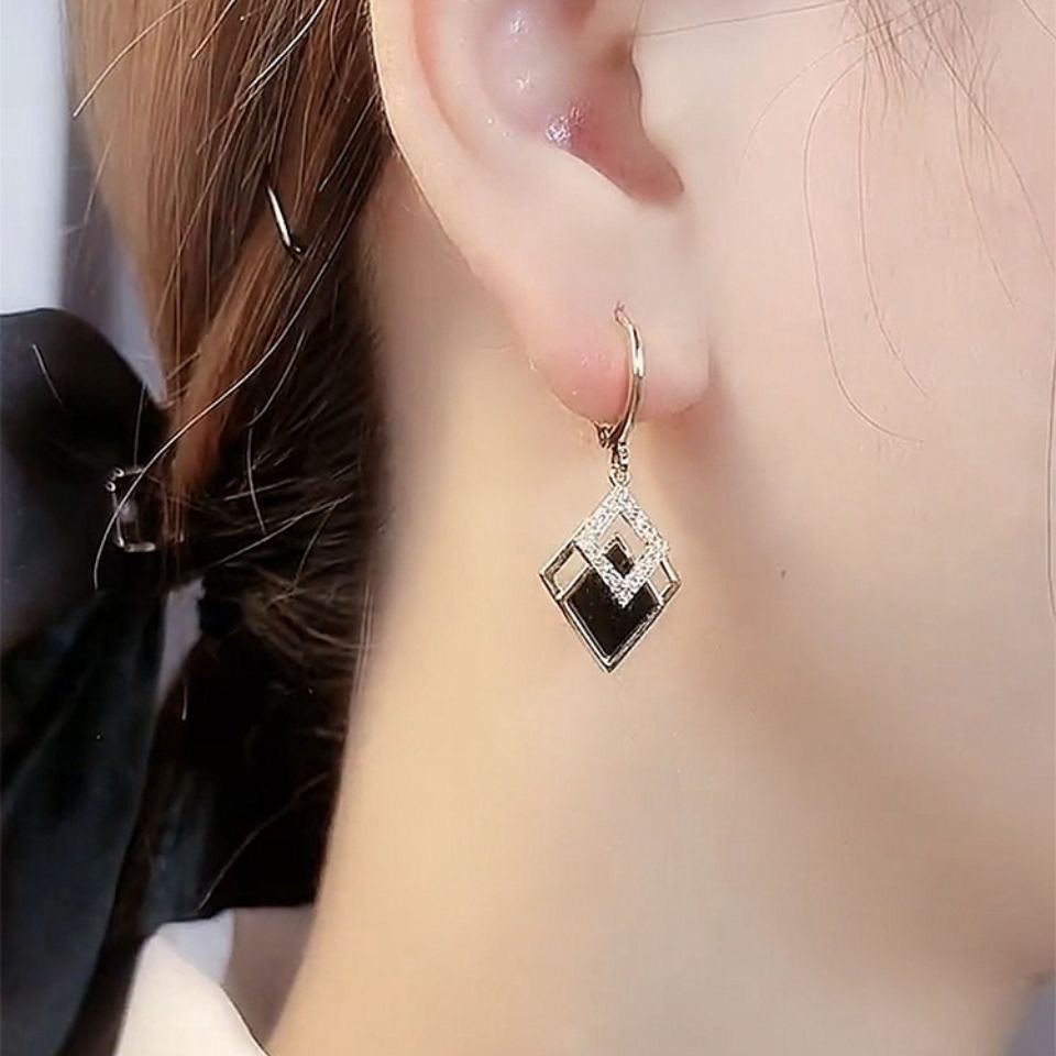 Black Diamond Earrings Light Luxury High-end Niche Design Distinctive Ear Buckle Earrings Fashion Elegant Sterling Silver Earrings for Women