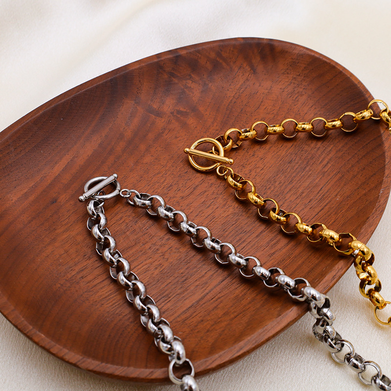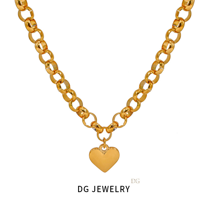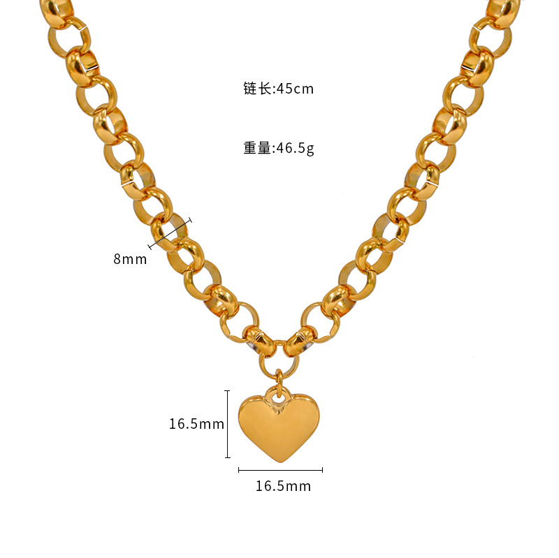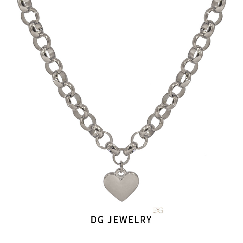 Cross-border new ins simple versatile smooth love pendant titanium steel bracelet OT buckle necklace suit women
