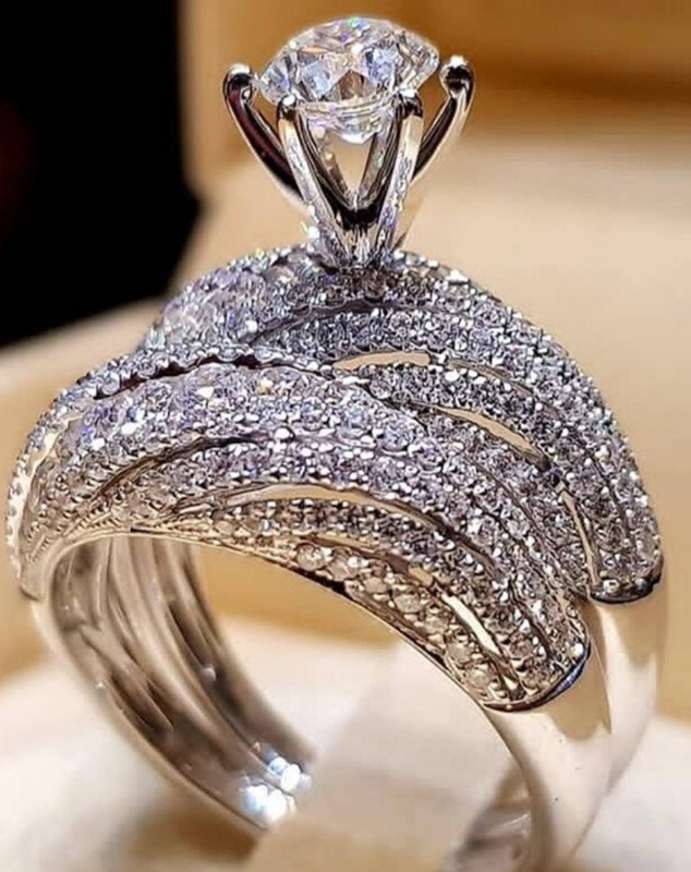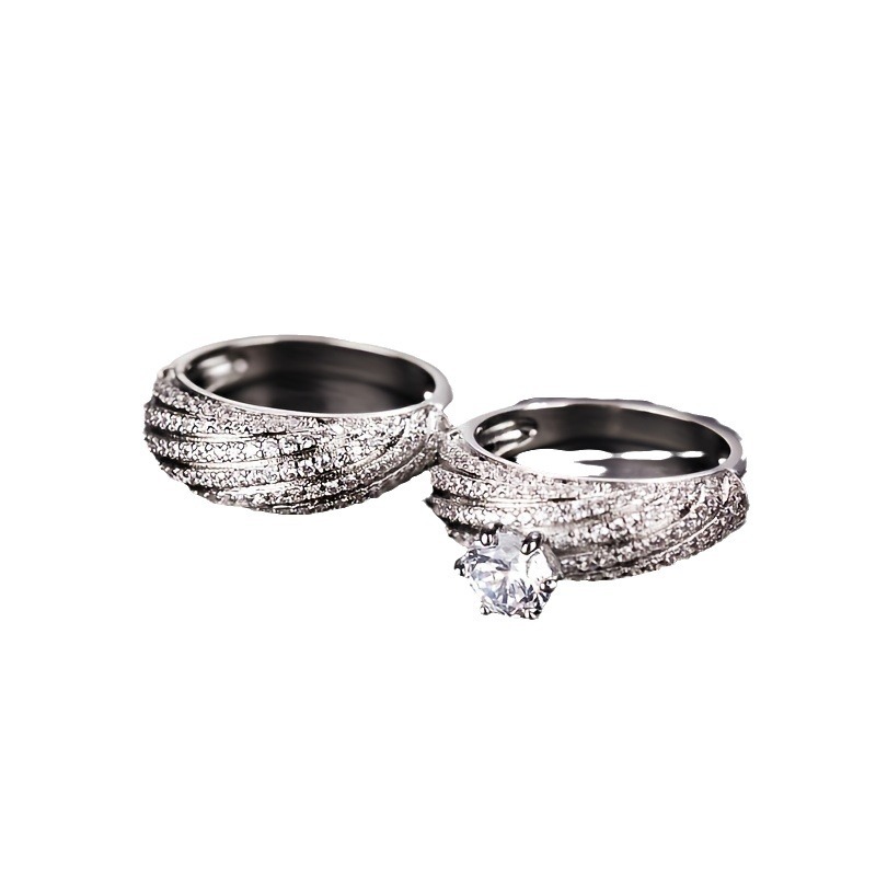 Cross-border TEMU Xiyin hot-selling full diamond two-piece ring ladies wedding engagement wearable manufacturers wholesale