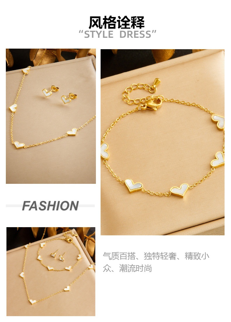 Korean Style Simple Fashion Elegant Gold-plated Shell Love Accessories Chain Stainless Steel Bracelet Earrings Necklace suit