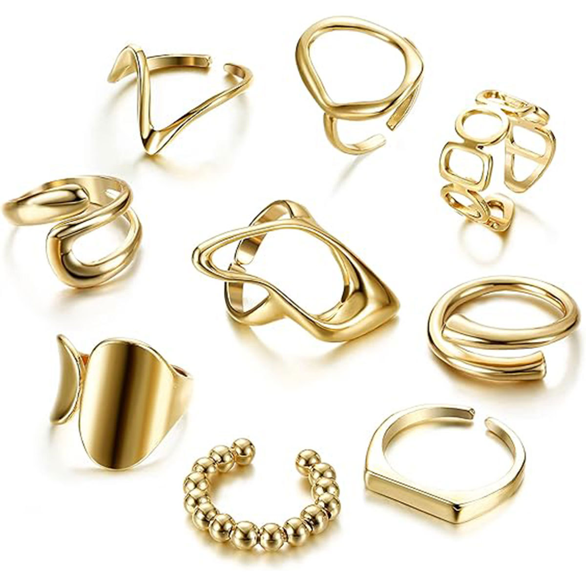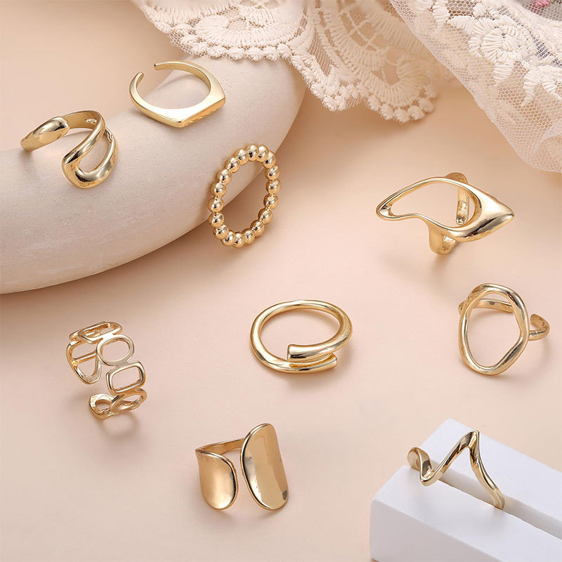 European and American Cross-Border 9 Simple Open Rings for Women Niche Design Adjustable Ring Geometric Asymmetrical Ring
