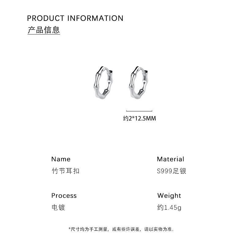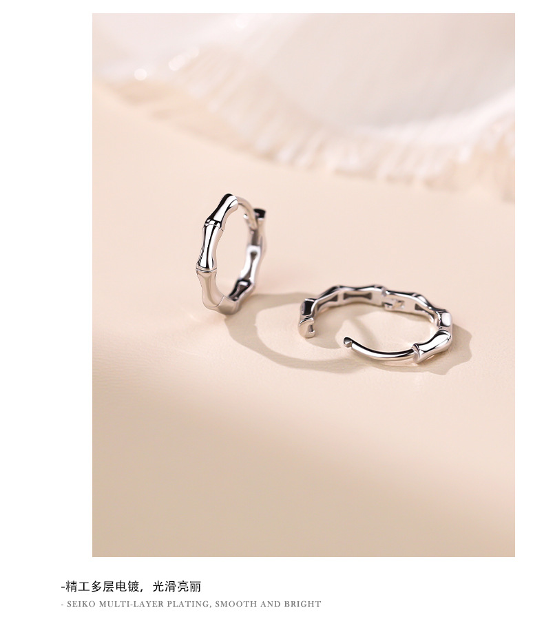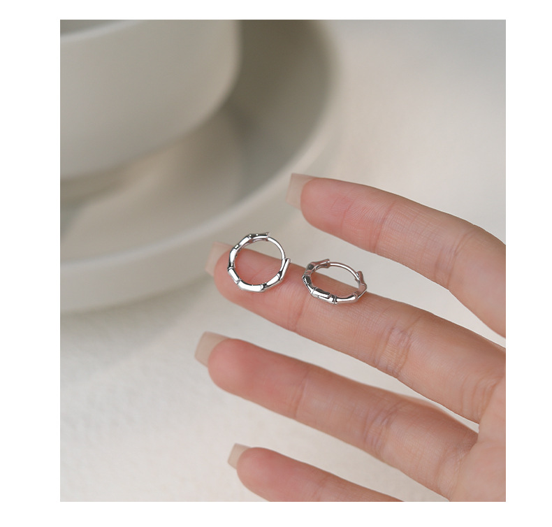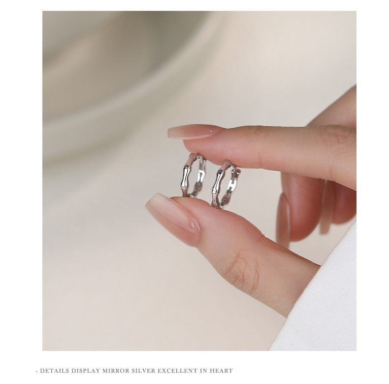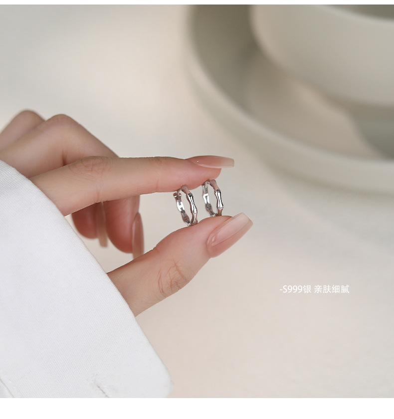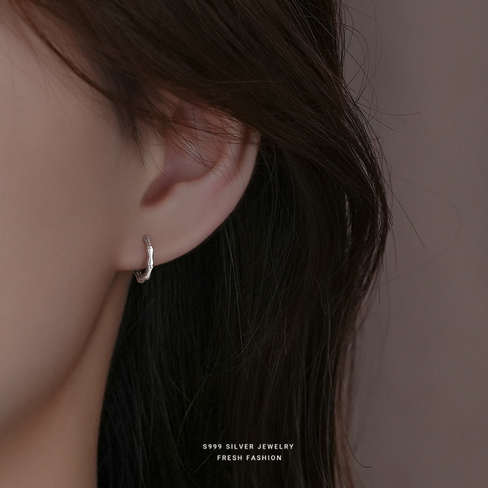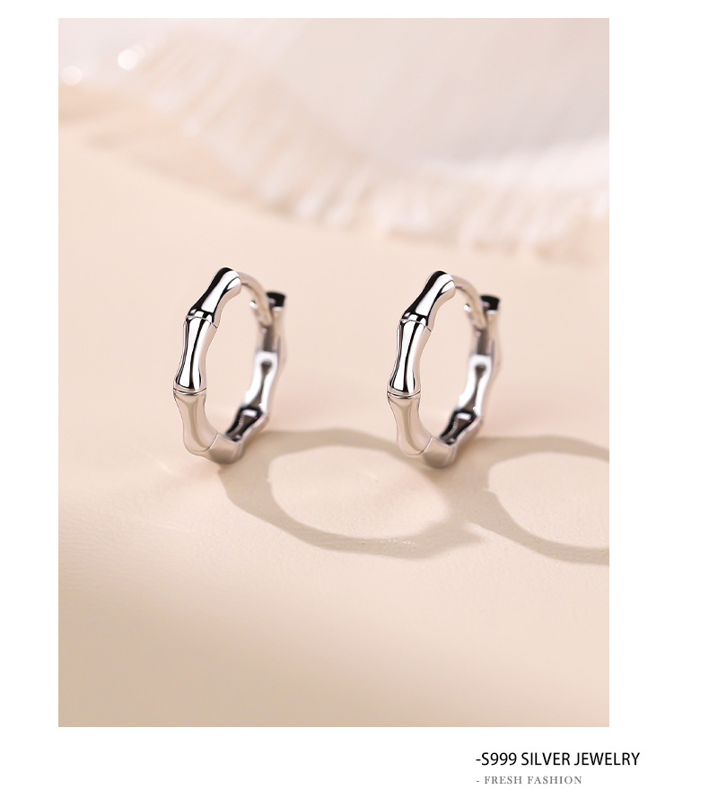 Bamboo Earrings for Women S999 Sterling Silver New Chinoiserie Simple Ear Buckles Versatile Niche Silver Earrings Men's Trendyy Earrings