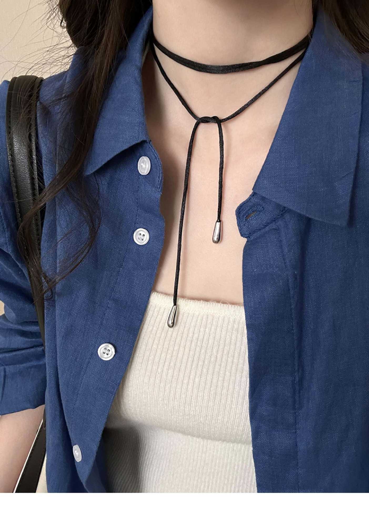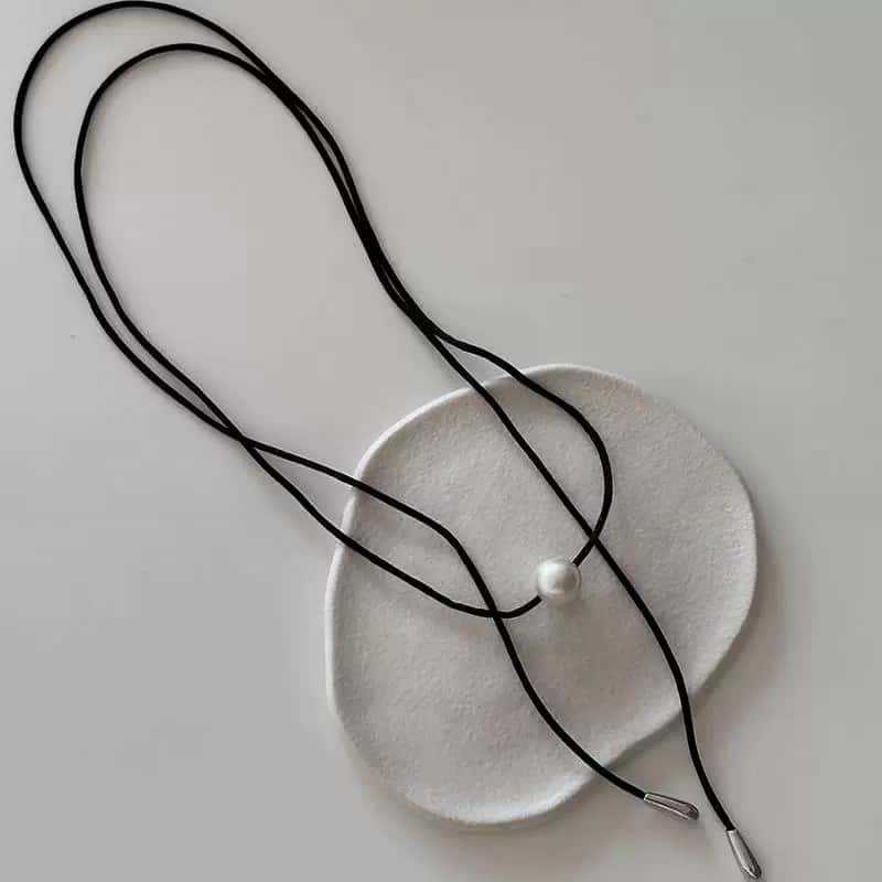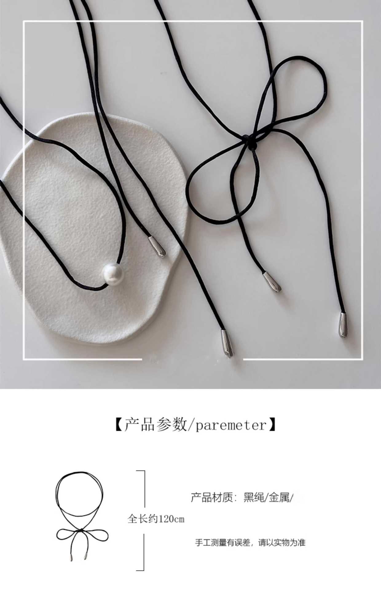 South Korea Niche Black String Pearl Pendant Long Strap Necklace Women's Simple Fashion All-match Necklace Chain Collarbone Chain