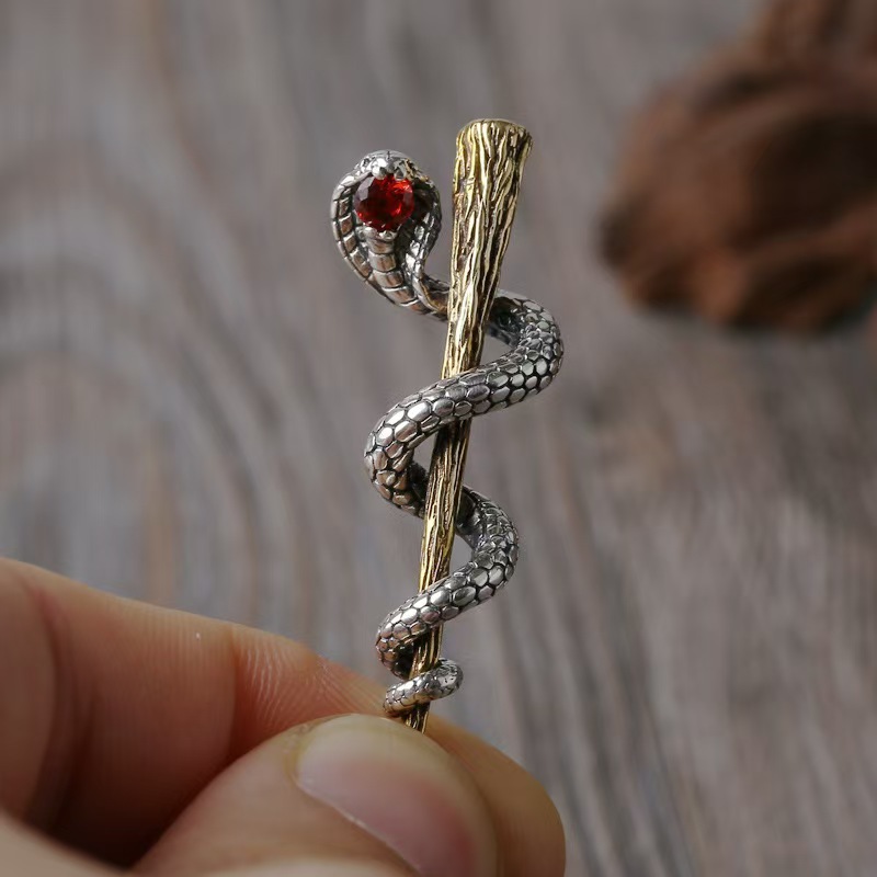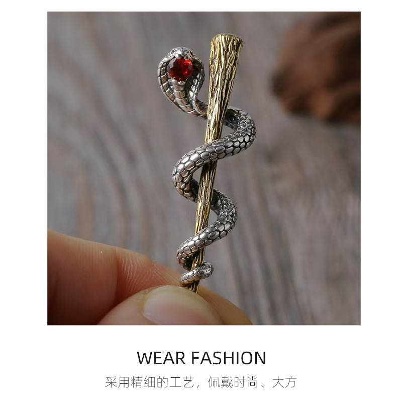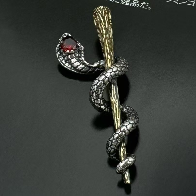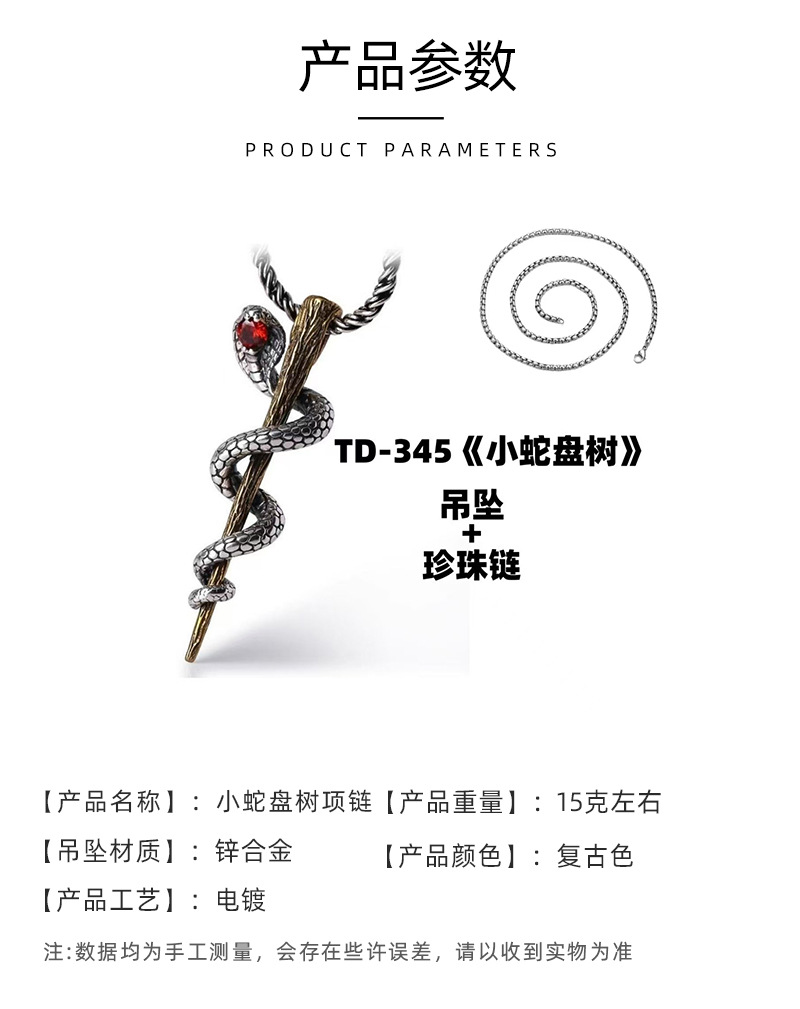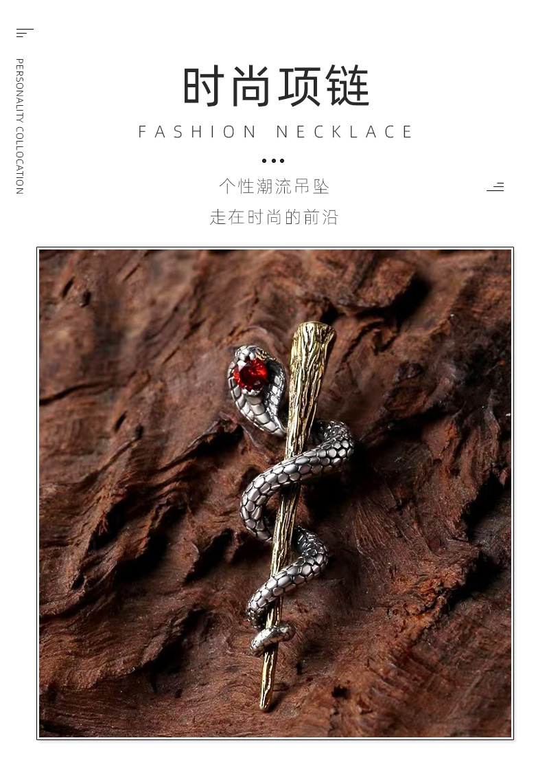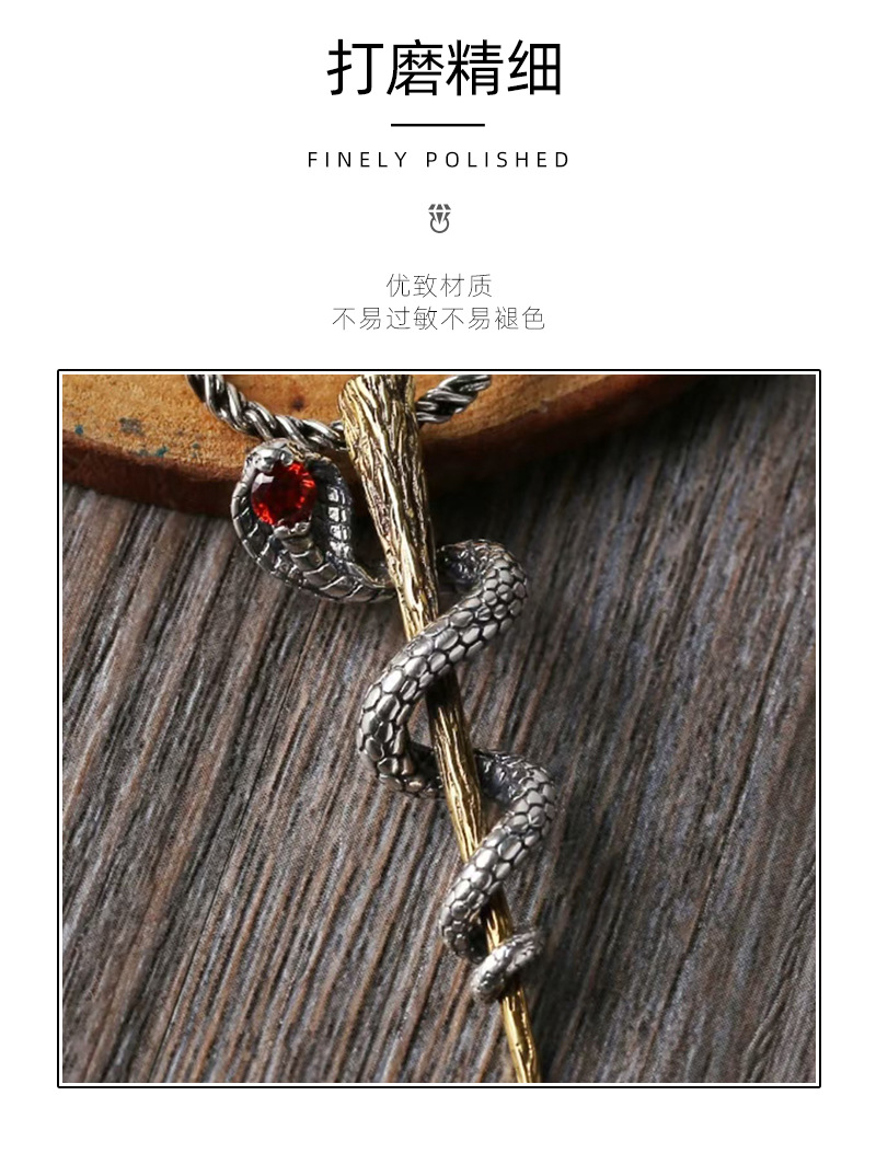 Vintage small snake plate tree Thai silver necklace creative king cobra small pendant clavicle chain sweater trendy necklace for men and women