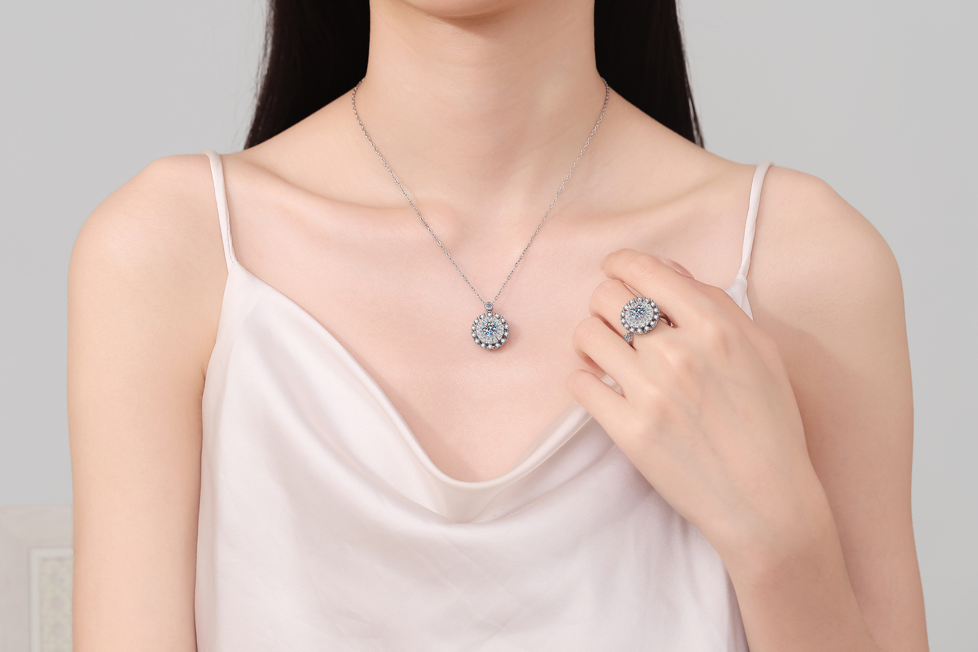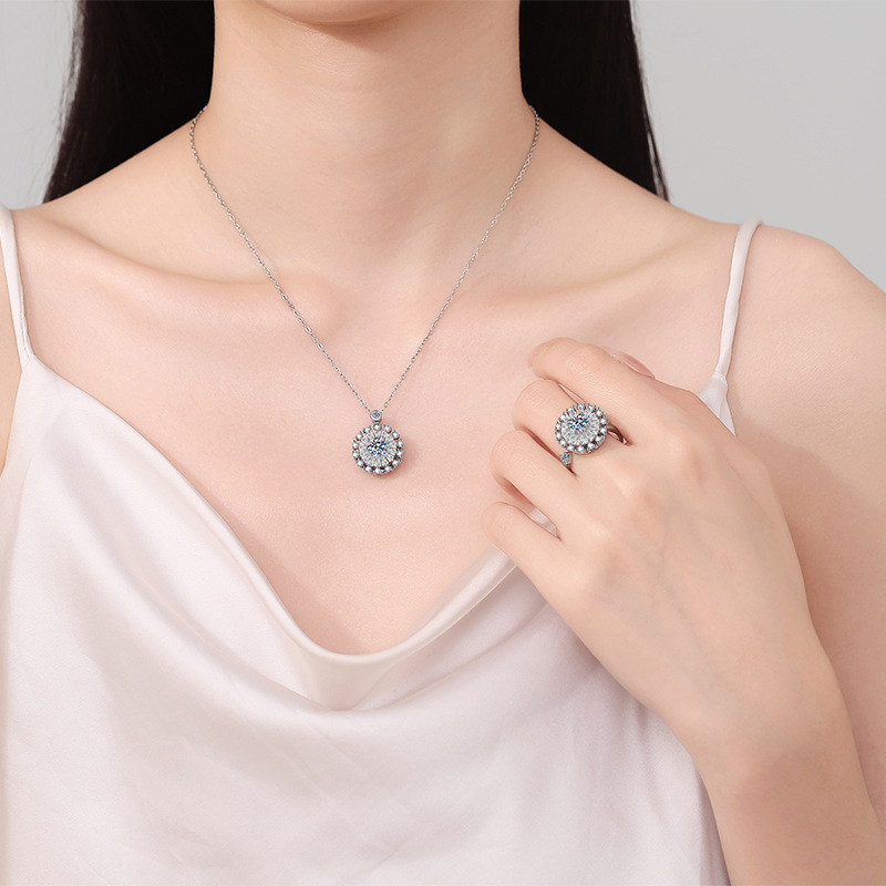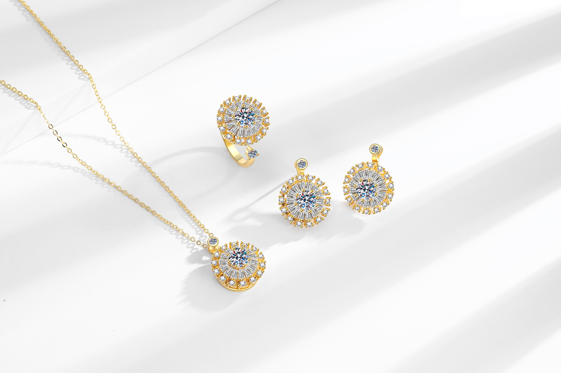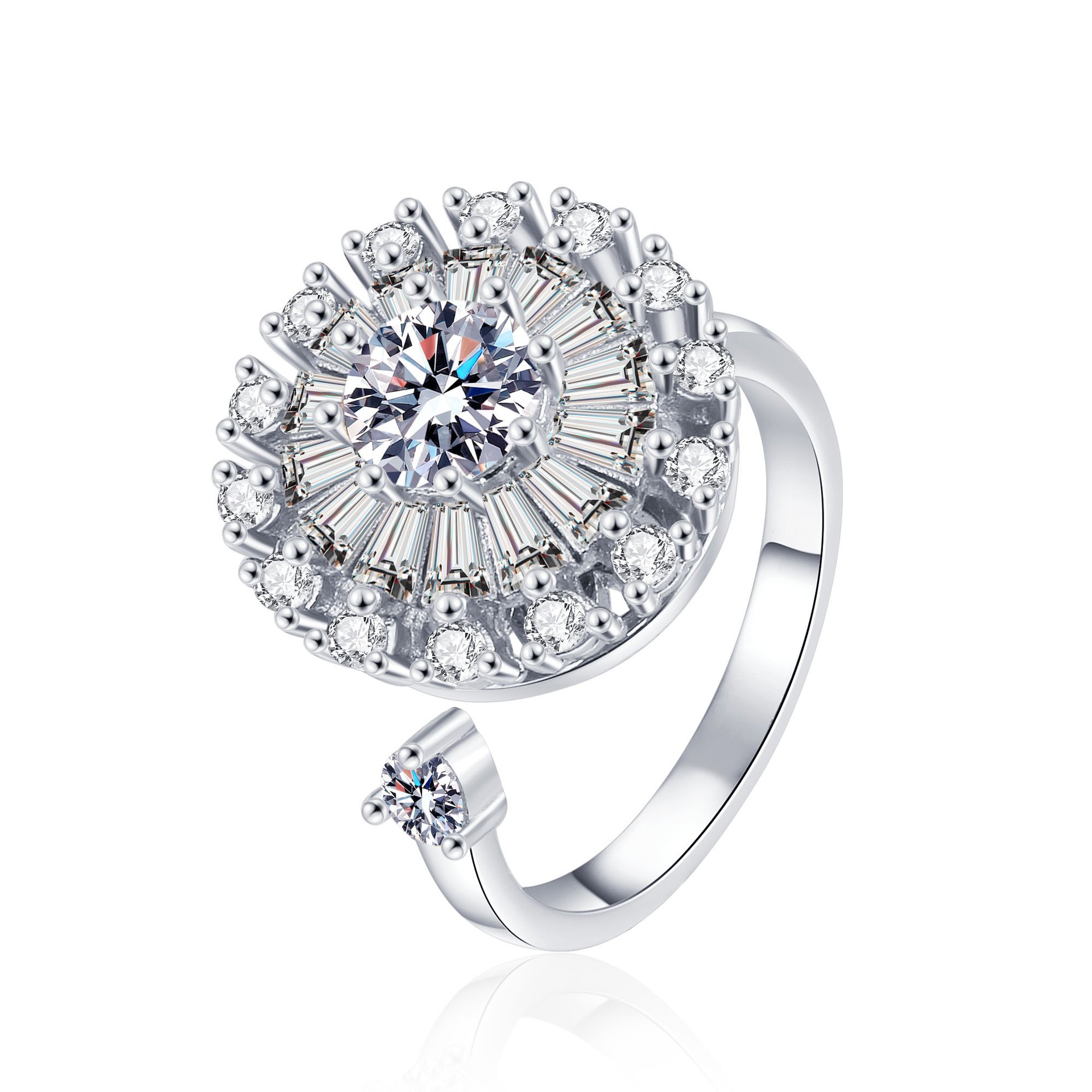 Cross-border European and American Explosions Internet Popular Fashion Rotatable Sunflower Earrings Ring suit Full Diamond Daisy Clavicle Chain