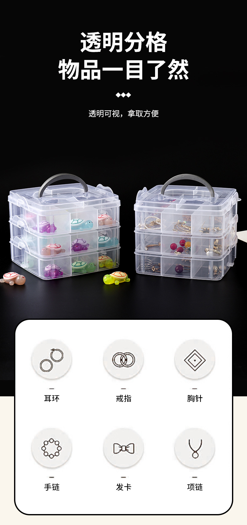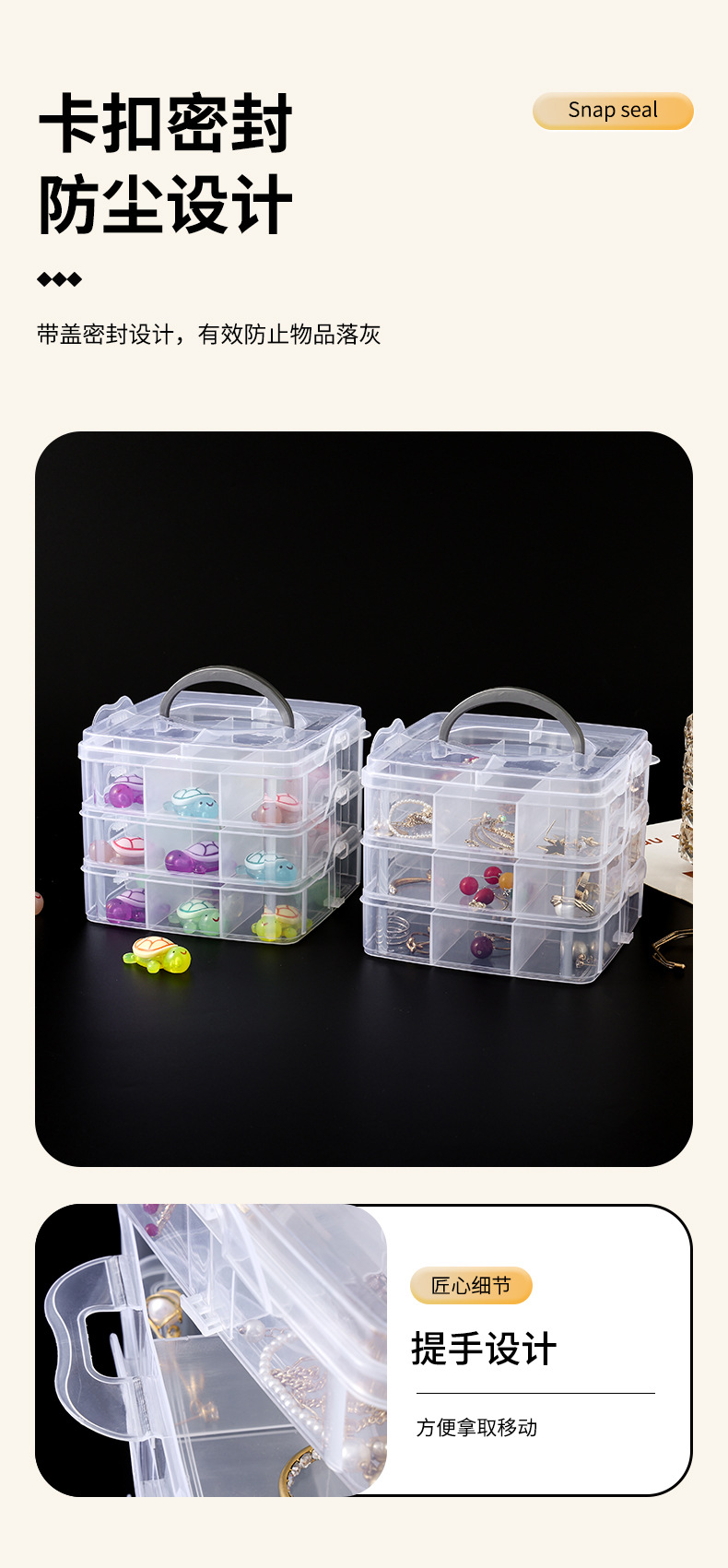 Small Three-Layer Storage Box, Plastic Jewelry Compartment Box, Small Earring and Ring Box, Jewelry Box, Jewelry Storage Box