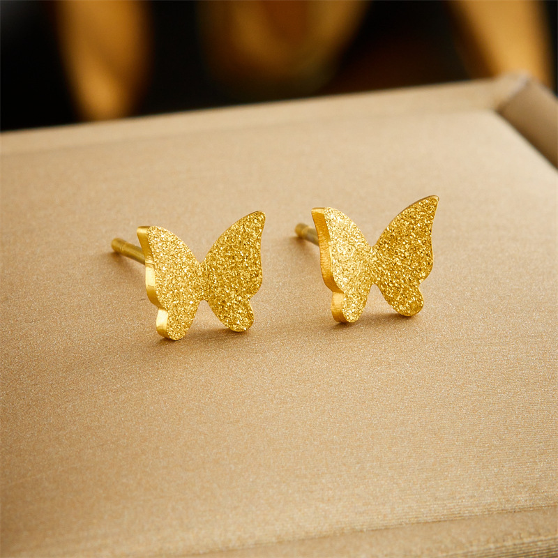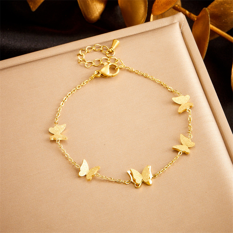 Korean Fashion Elegant All-match Gold-plated Glitter Three-dimensional Butterfly Accessories Chain Necklace Earrings Bracelet Jewelry suit