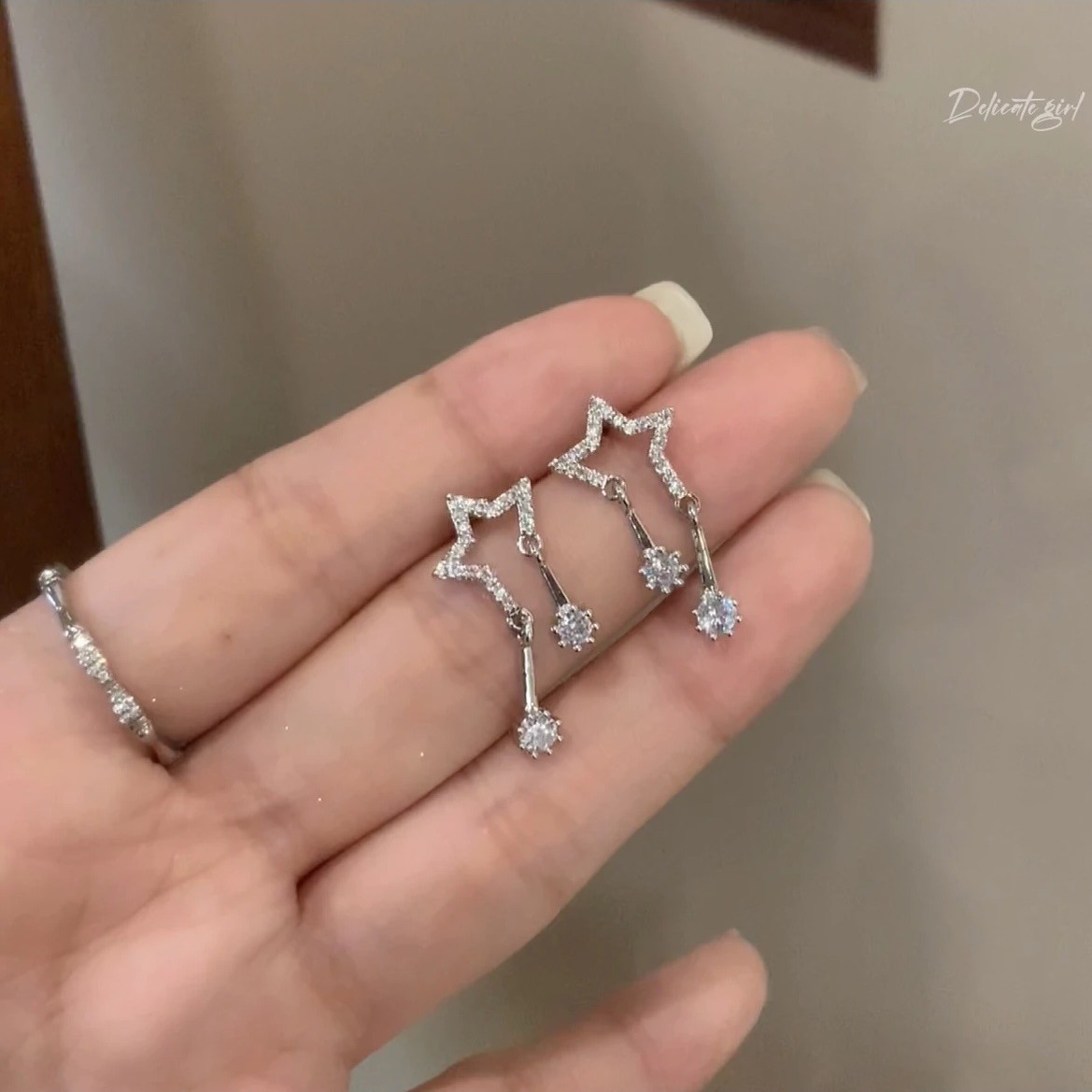 925 Silver Needle High-grade Star Earrings Women's Zircon Full Diamond Sweet Bow Earrings Fashion All-match Earrings