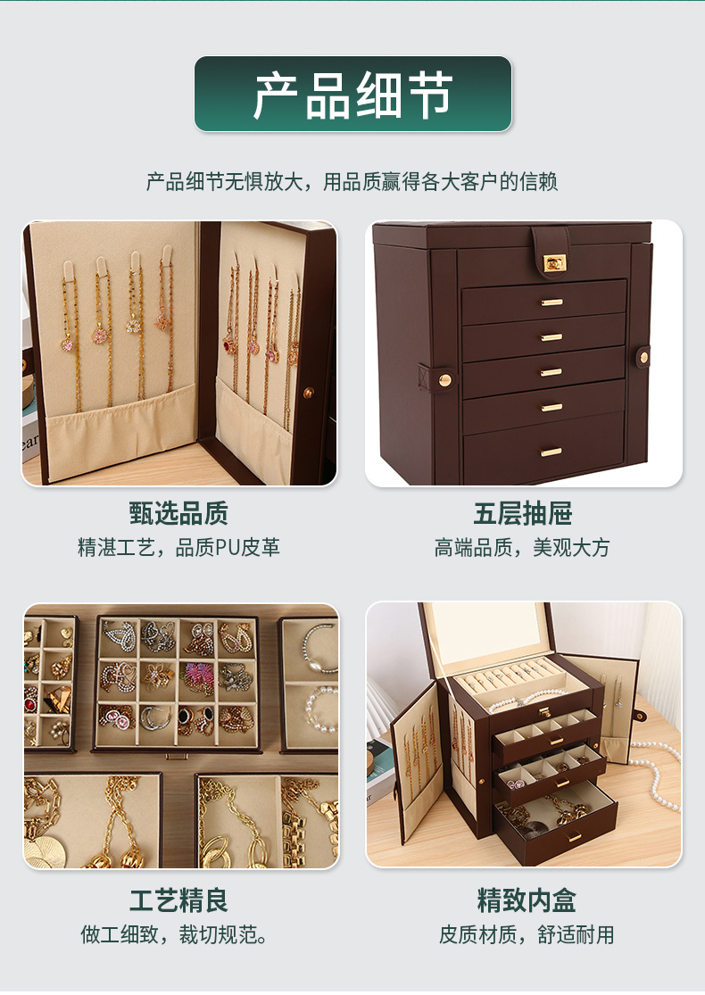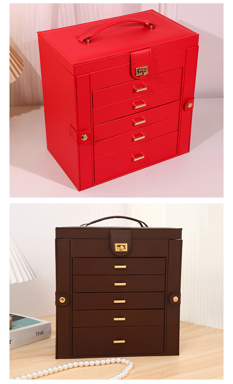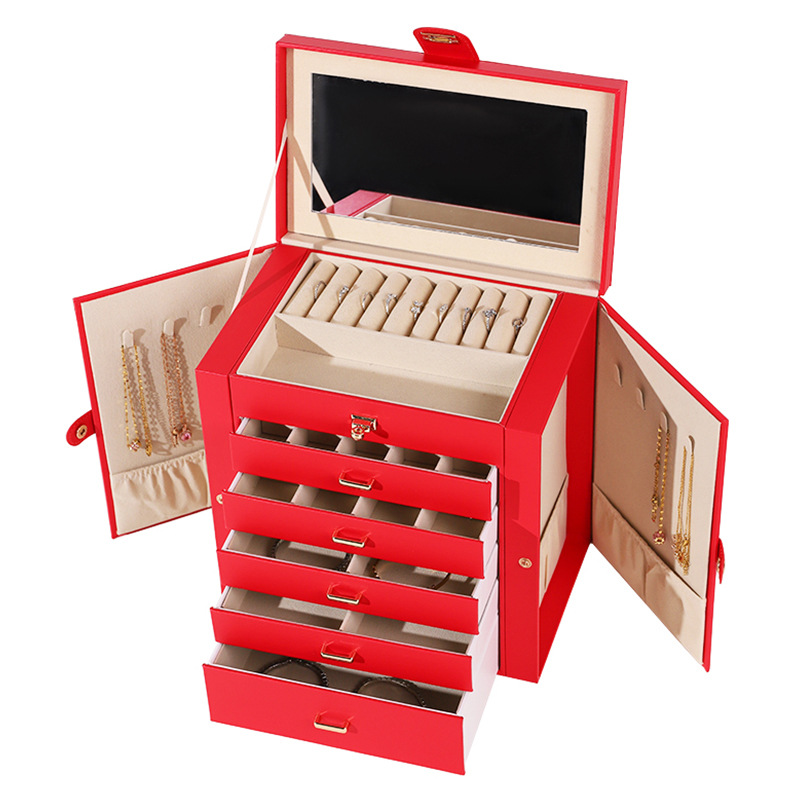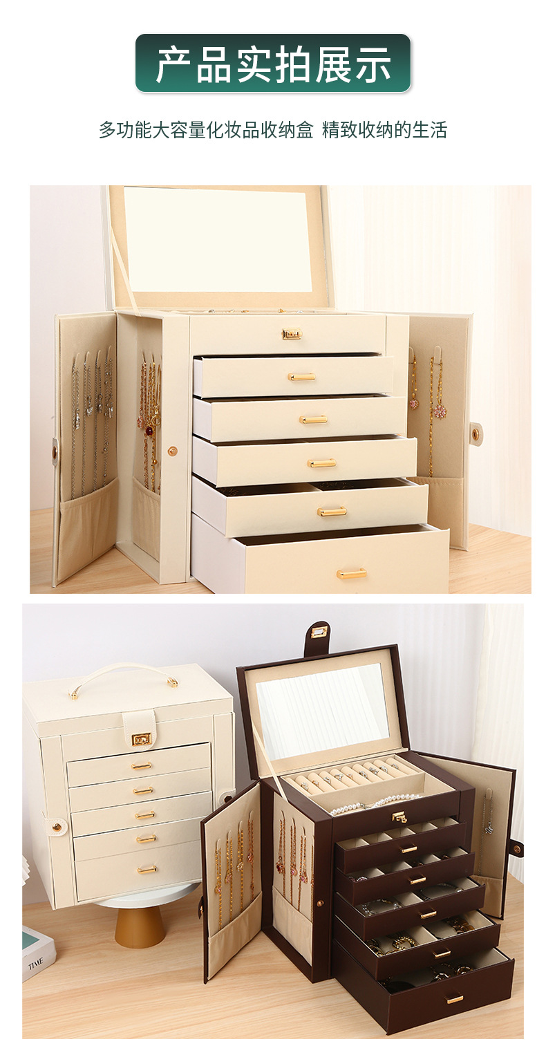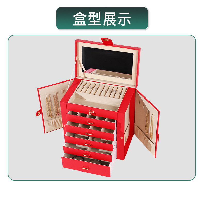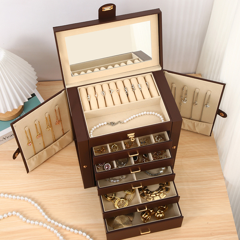 Luxury Six-layer Large Capacity Jewelry Box with Mirror Jewelry Storage Box Drawer Earrings Necklace Jewelry Box