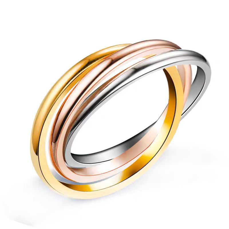 European and American Style Three-Ring Three-Colorful Ring Stainless Steel Personalized Simple Student Popular Bestie Ring Factory Direct Sale