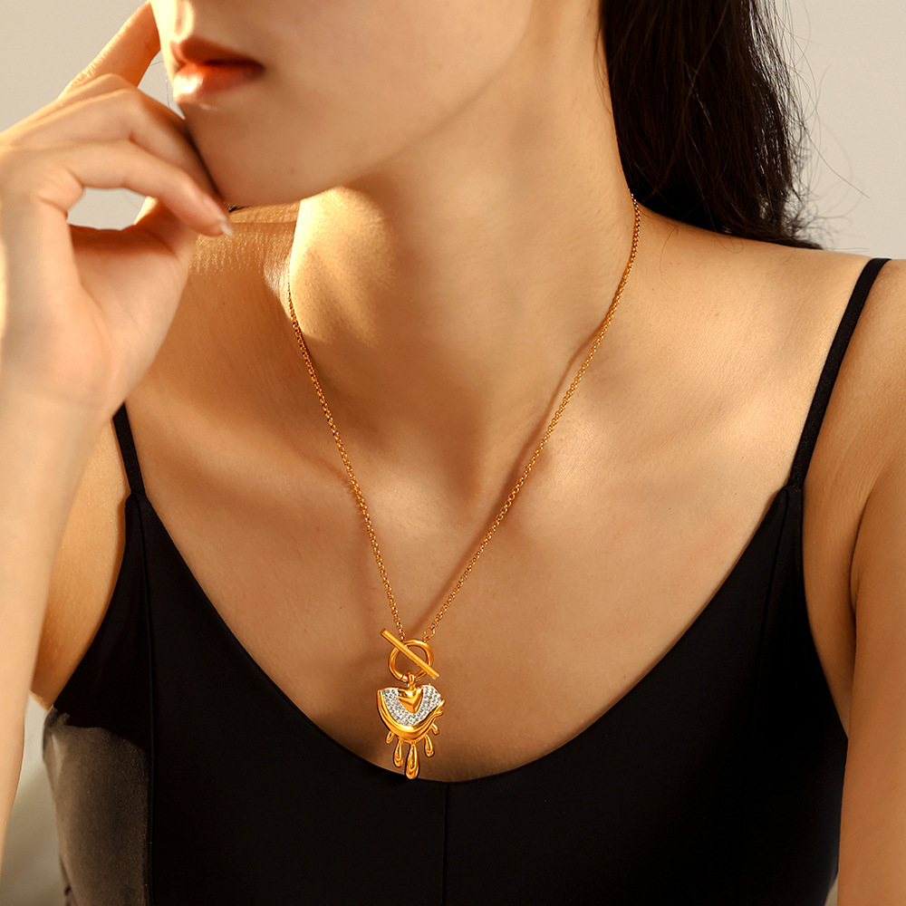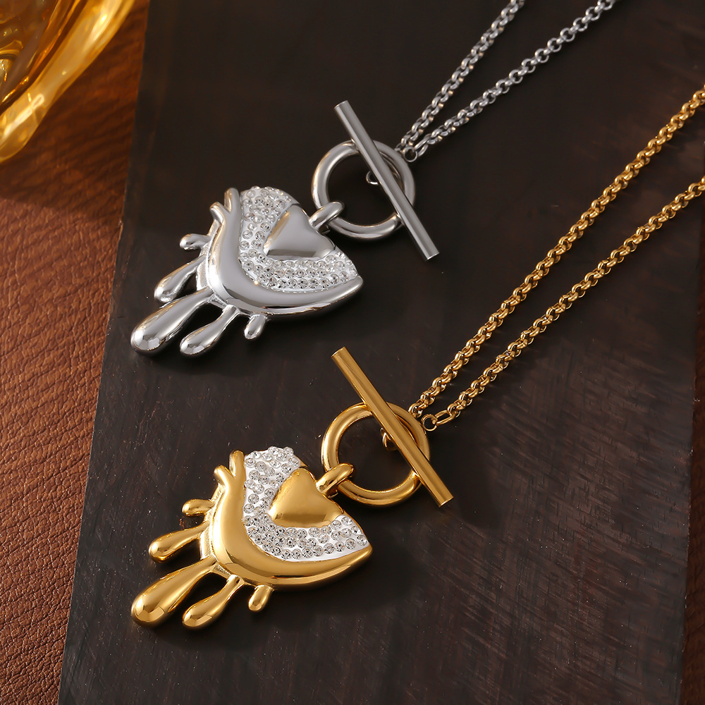 Processing and Customization of Heart Zircon Angel Wings Cross-Border Titanium Steel Necklace Versatile Stylish Elegant Goddess Gift