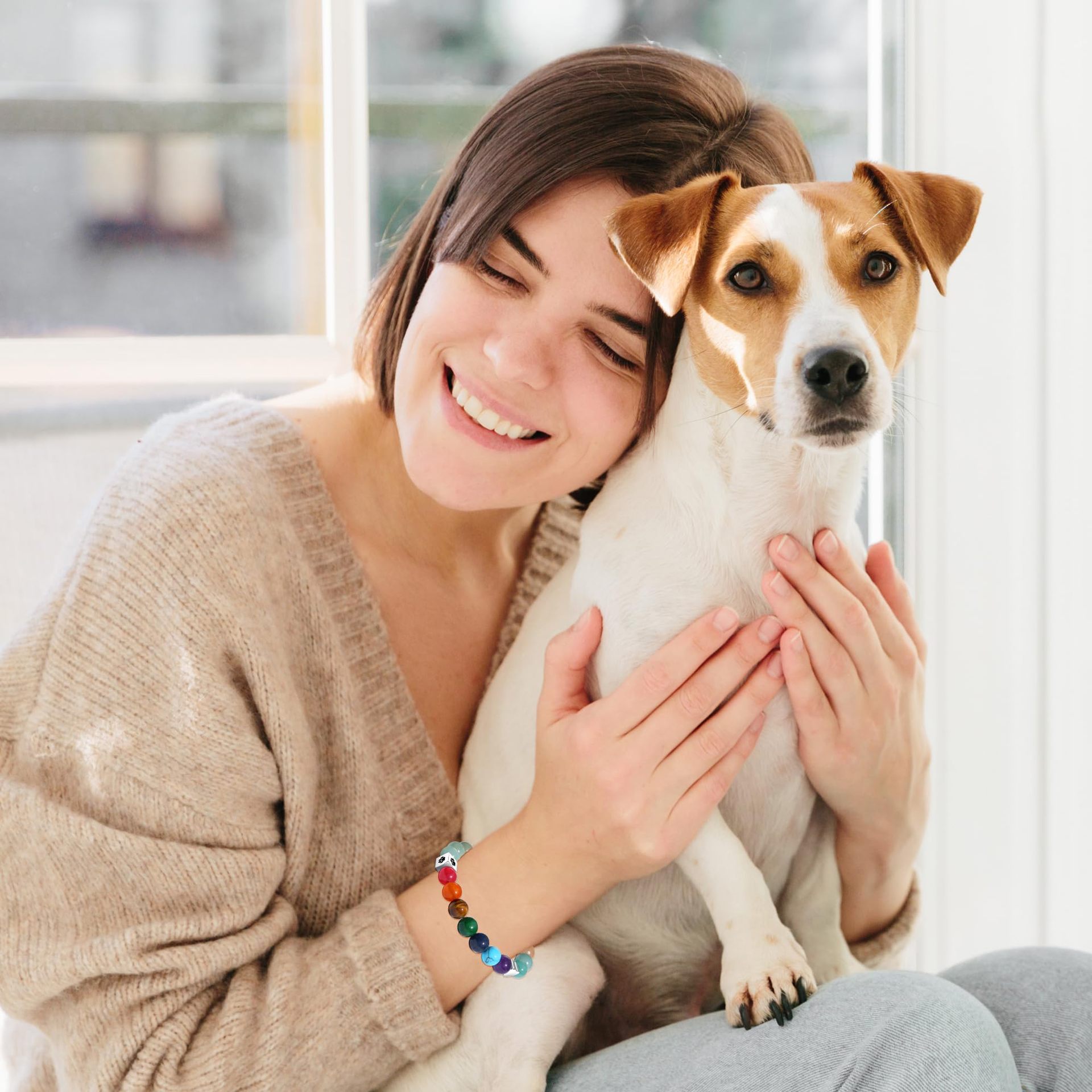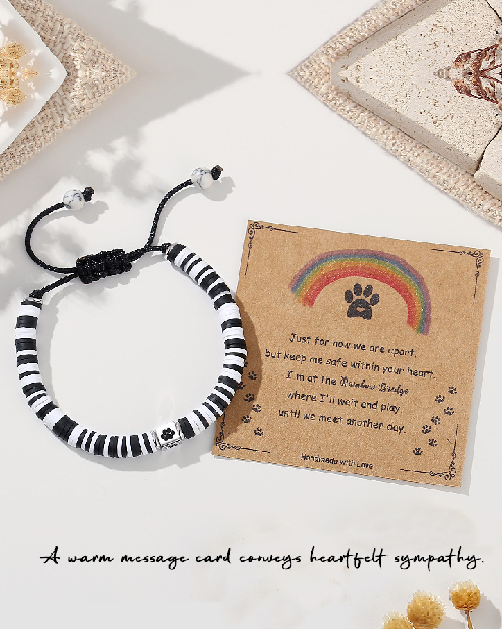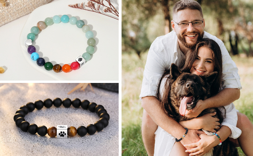 2024 Amazon New Oil Dropping Dog Paw Print Bracelet Cute Pet Paw Print Commemorative Natural Stone Hand Beaded Bracelet