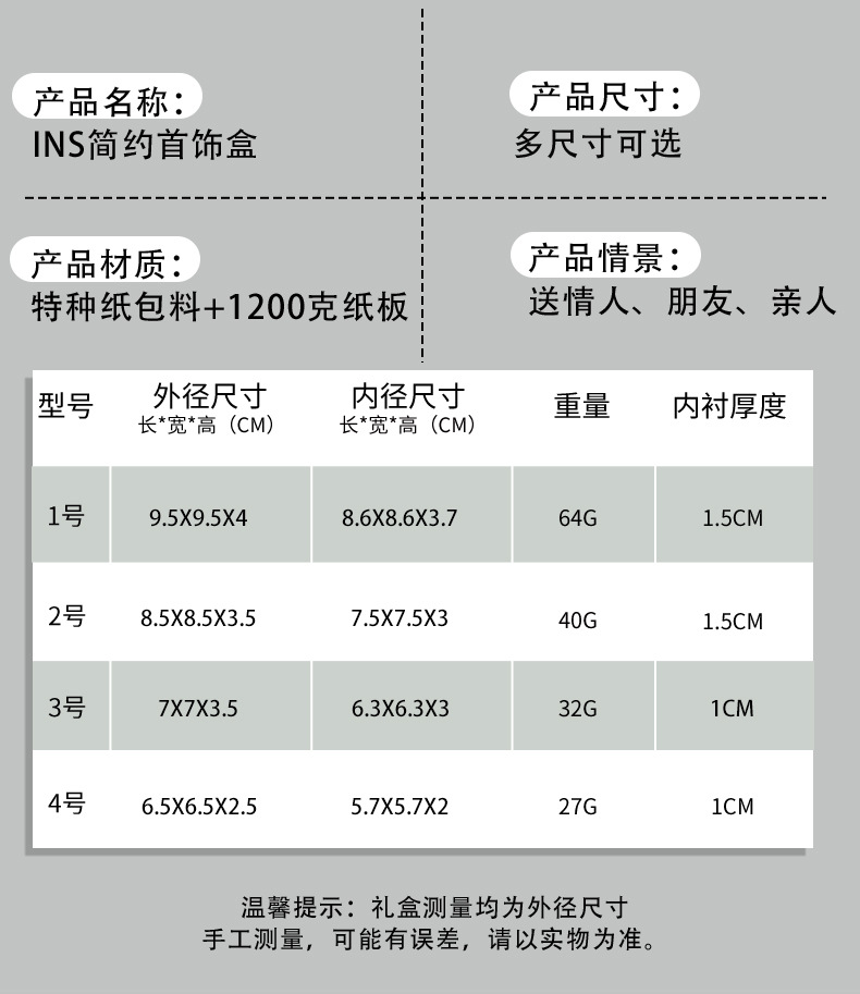Specification model: Gray flip-top box (including velvet sponge); 9.5*9.5*4cm