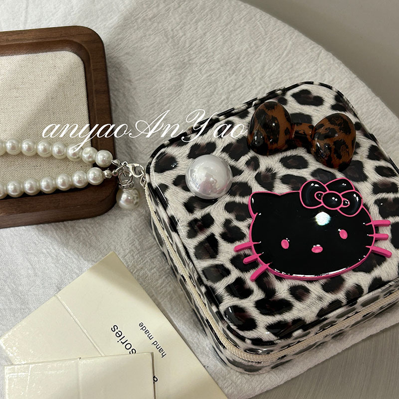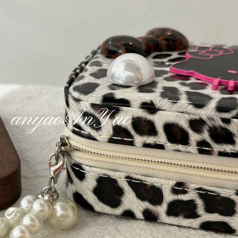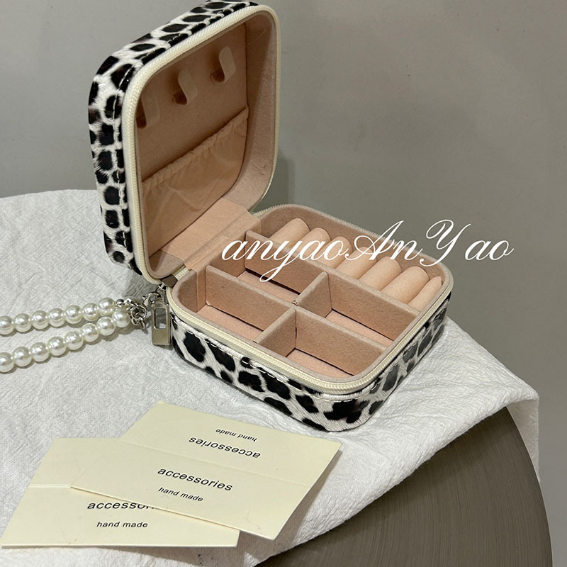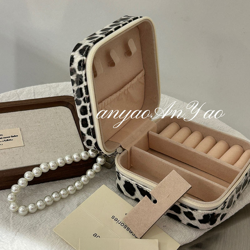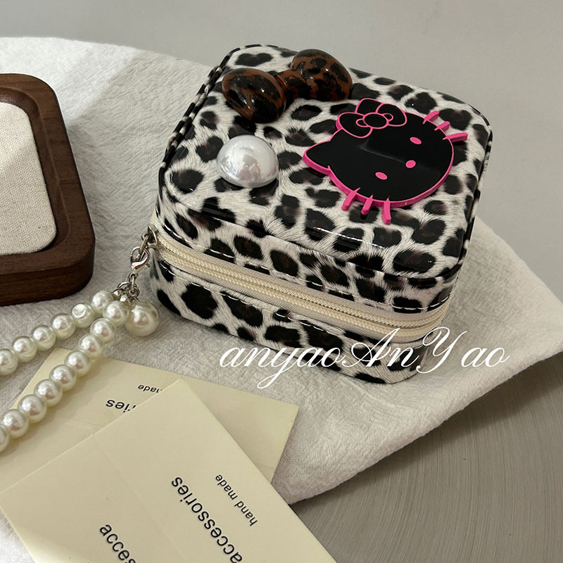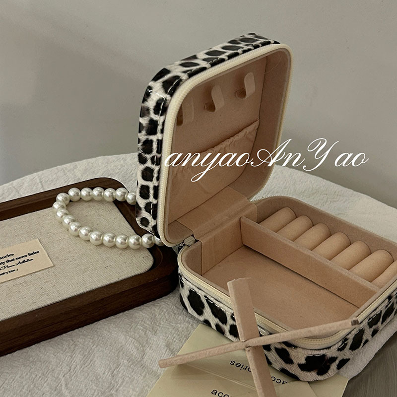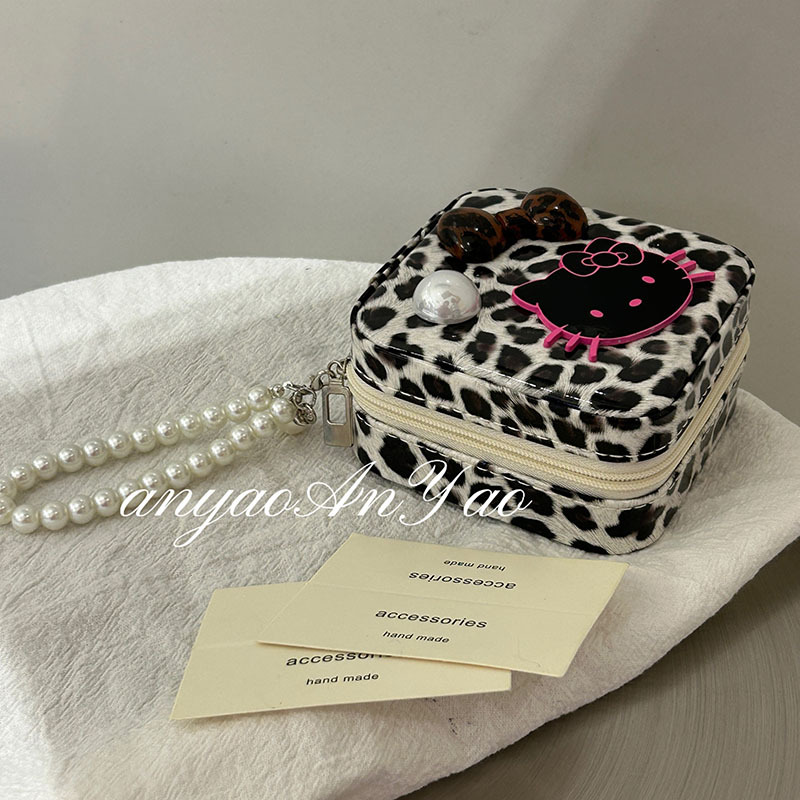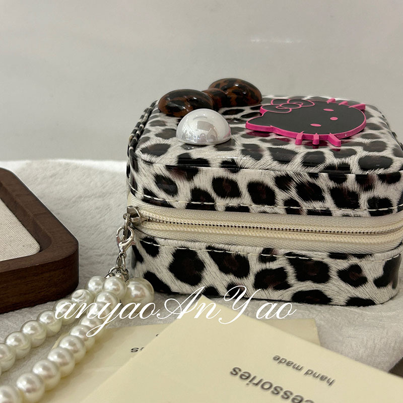 Korean Cute Kitty Leopard Print Jewelry Box Ins Style Popular Dustproof Layered Storage Box Portable Sexy Jewelry