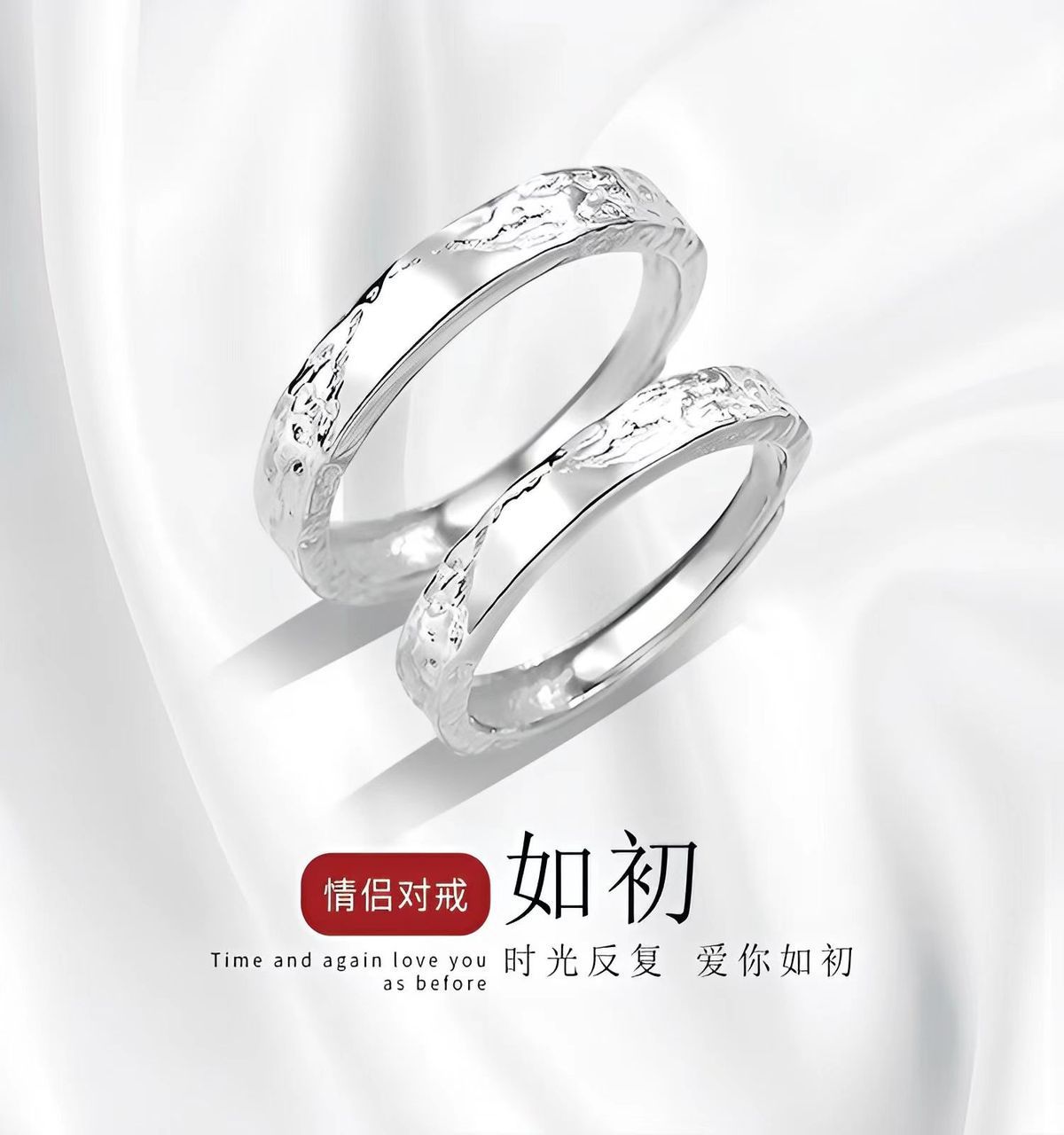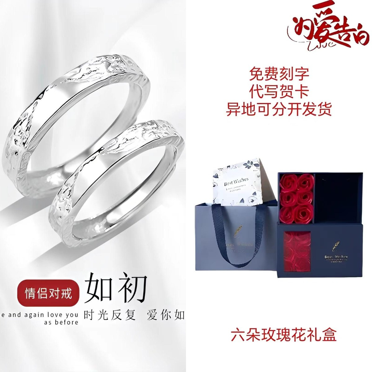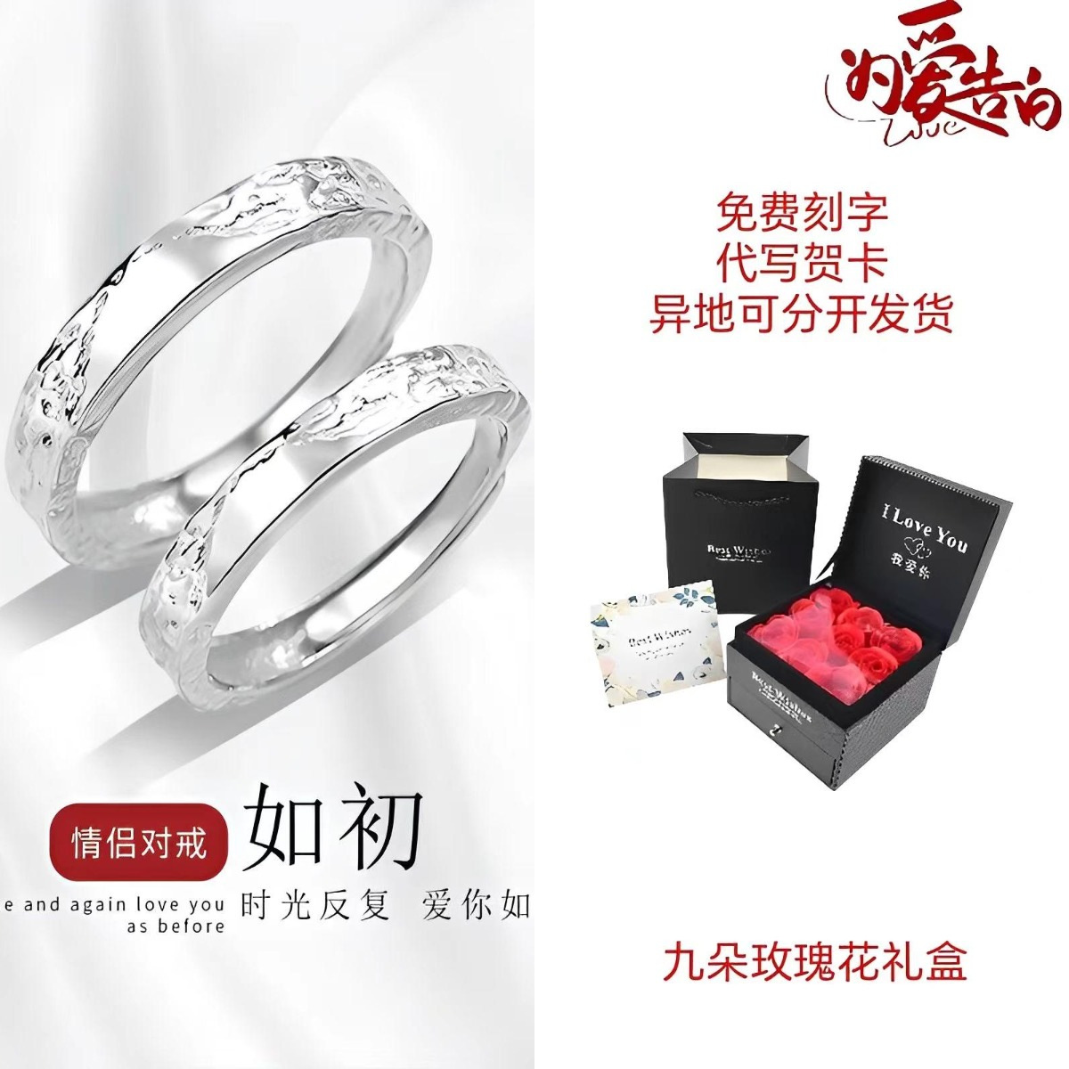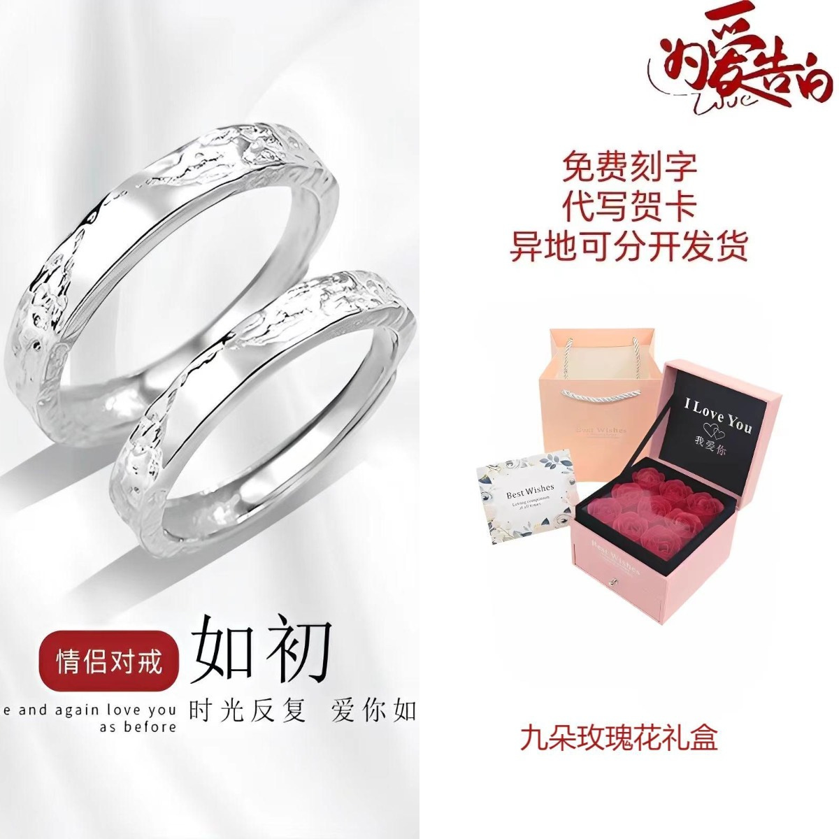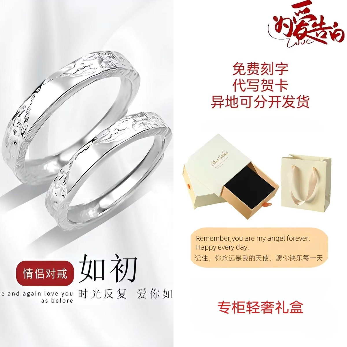 S999 Sterling Silver Ring for Men and Women, as First Couple Rings, Weilan Heart-Warming Open Ring, Holiday Gift for Girlfriend