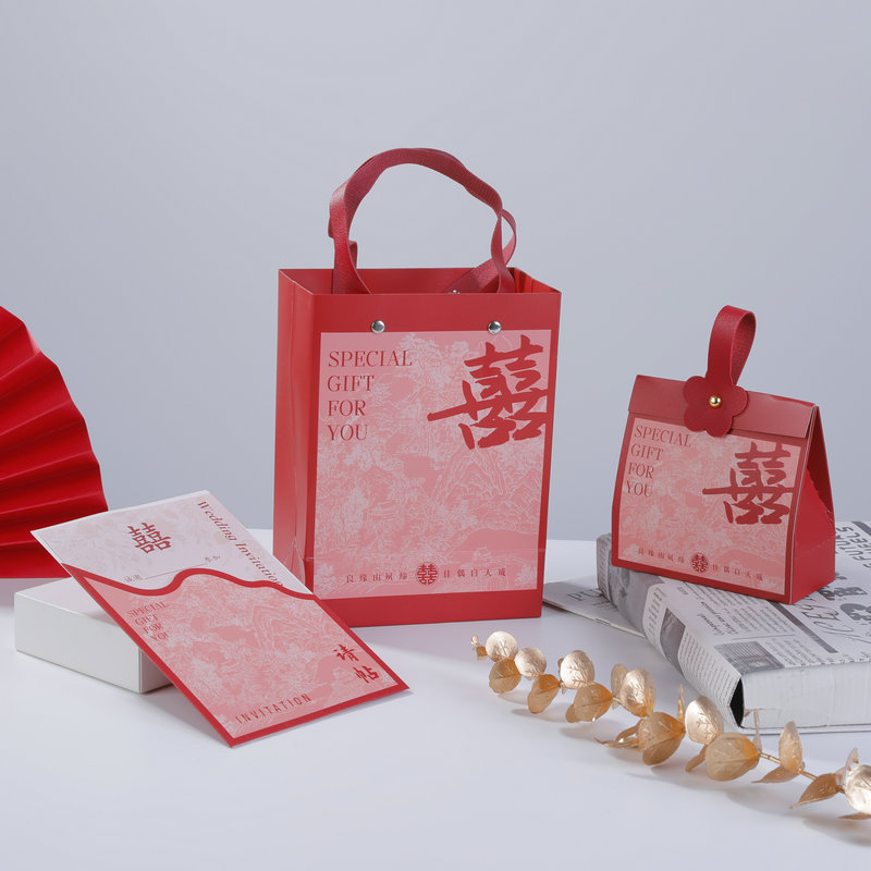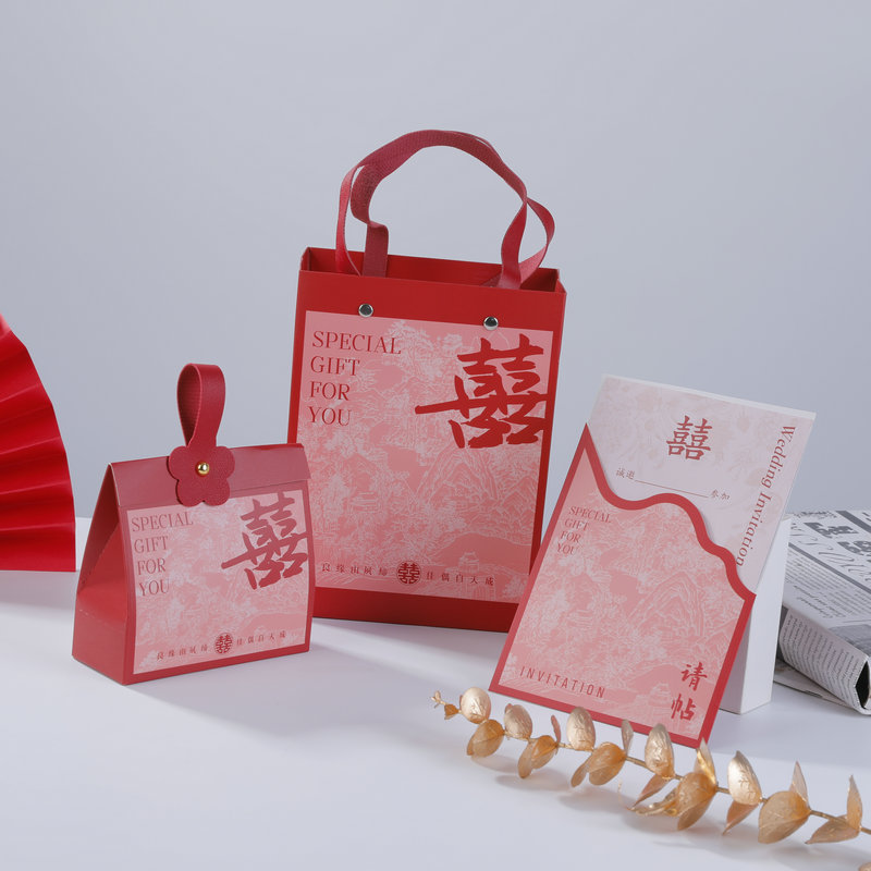 Pink Kraft Paper Bag Wedding Candy Box Gift Bag Festive Wedding Souvenir Packaging Bag Chinese Gift Paper Bag
