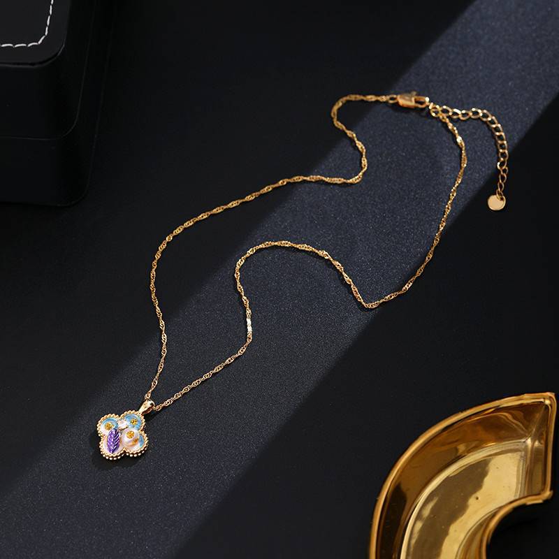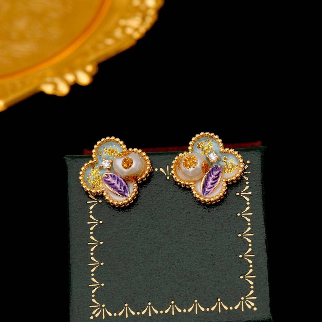 High Version Real Gold Plating Oil Painting Series National Tide Enamel Freshwater Pearl Earrings Necklace suit
