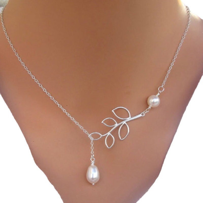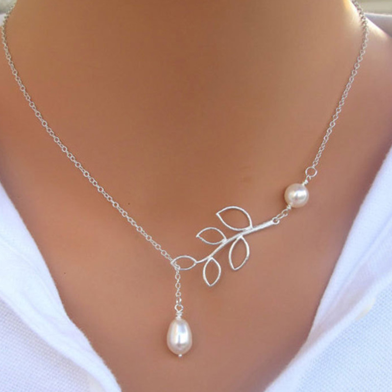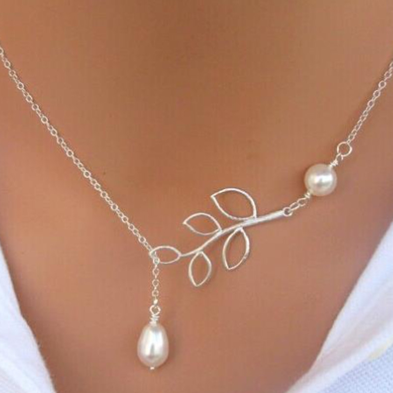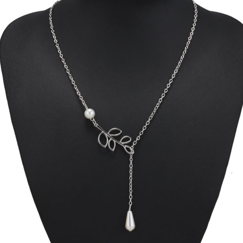 Europe and the United States new style fashion personality leaves pearl water drop necklace clavicle chain women's jewelry manufacturers wholesale