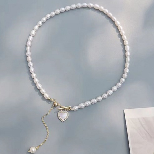 Color: Natural freshwater pearl love necklace