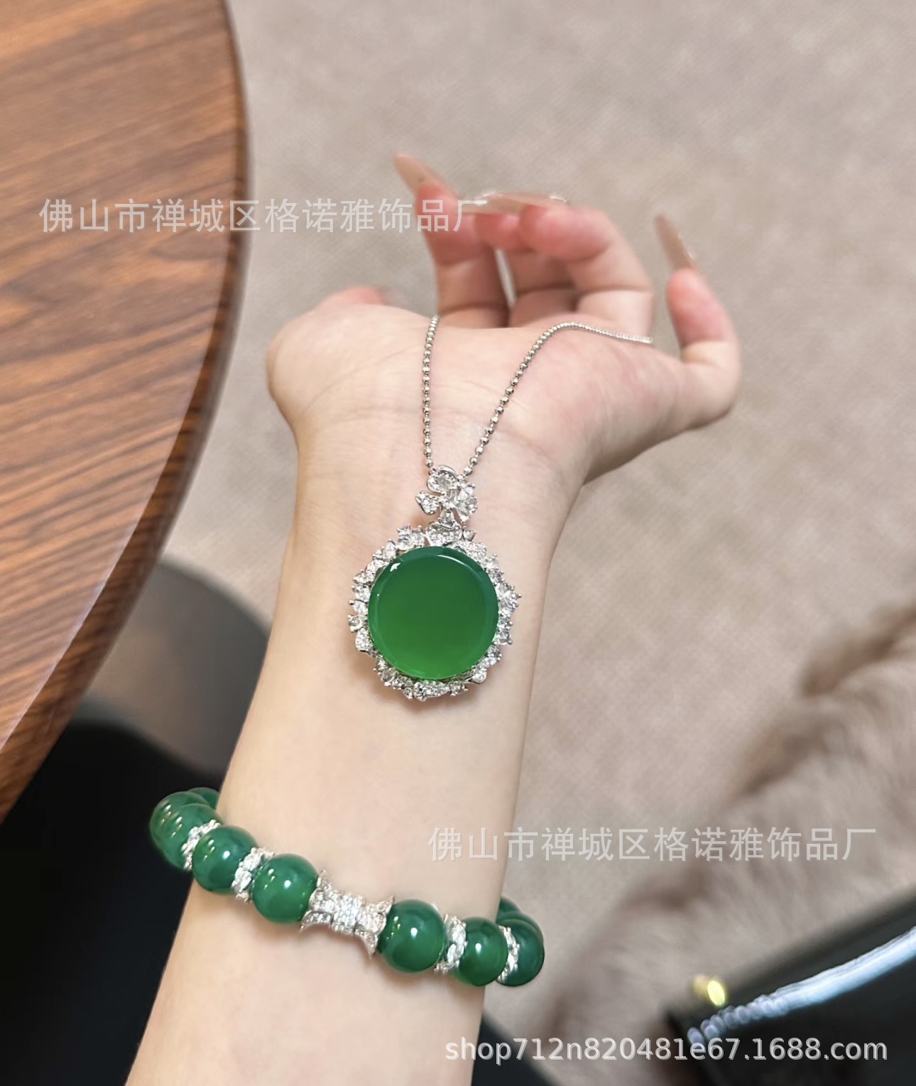 No fading sterling silver live hot jade chalcedony platinum plated disc Ping An brand temperament necklace clavicle chain women