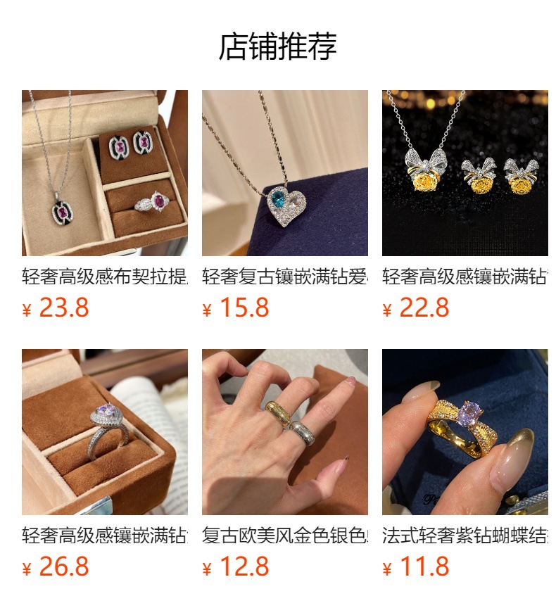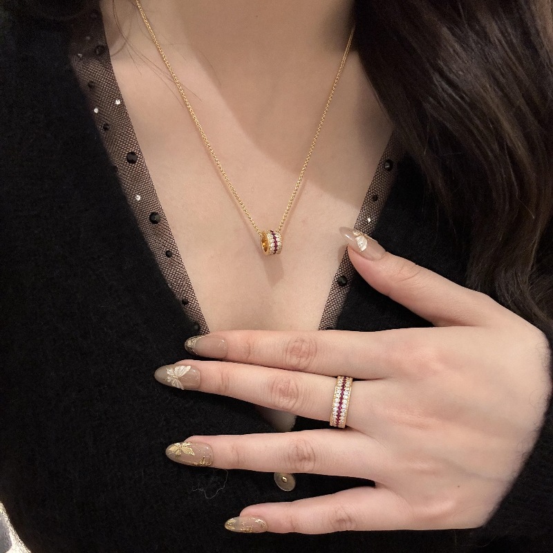 Light Luxury High-end Sense Antique Color Set Ruby Three-row Diamond Ring Necklace Fashion Luxury Elegant suit