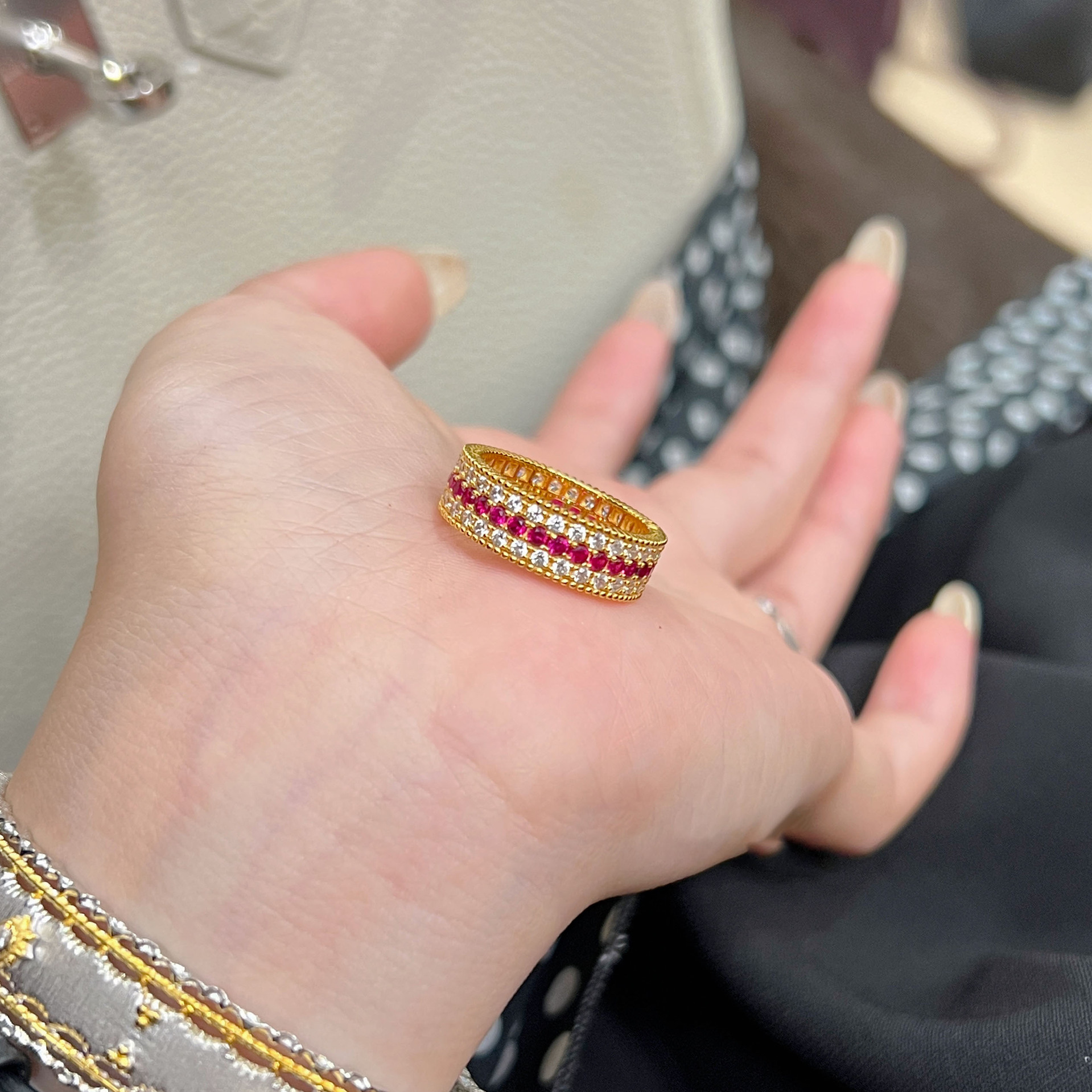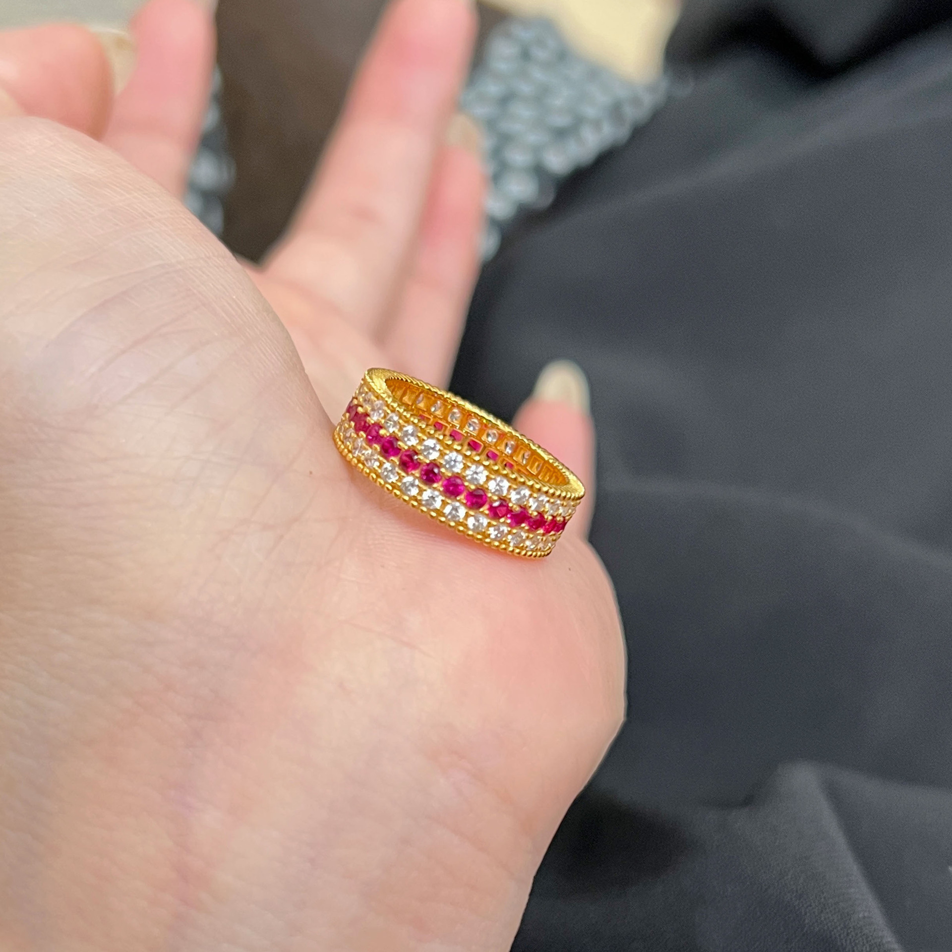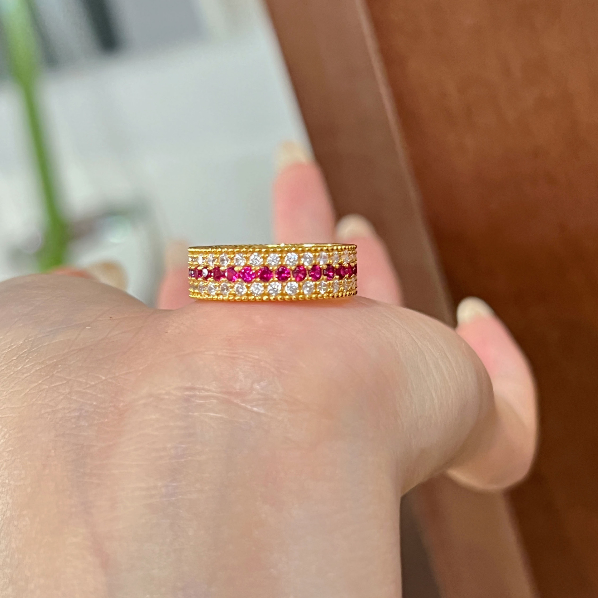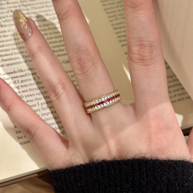 Color: Ruby three-row diamond ring