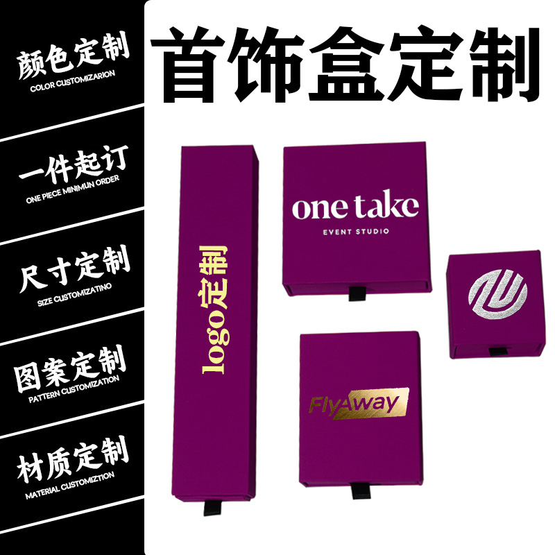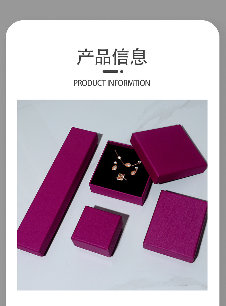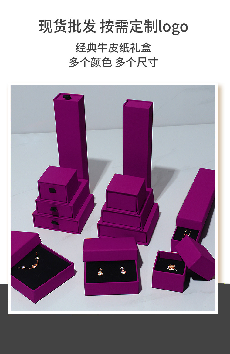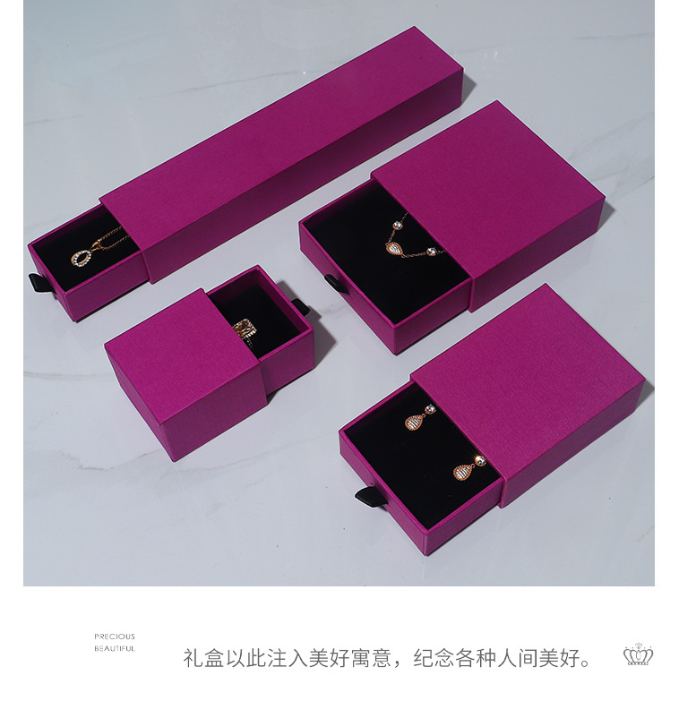 Specification model: Purple drawer box; 9*7*3cm (ring, earrings, pendant set)