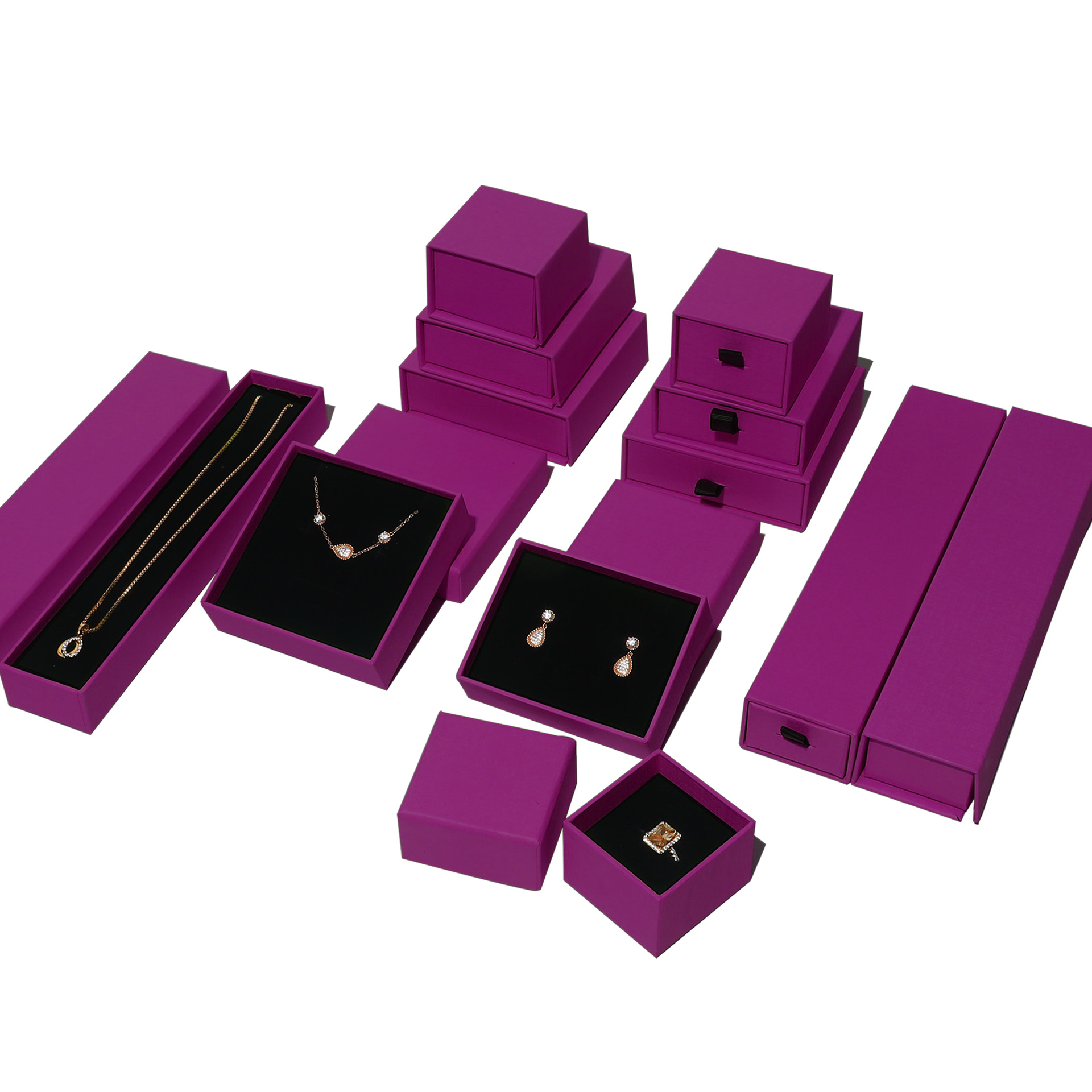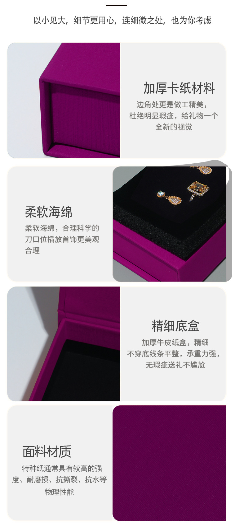 Specification model: Purple drawer box; 9*9*3cm (ring, earrings, pendant set)