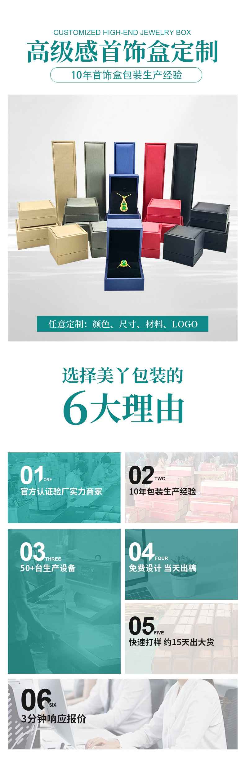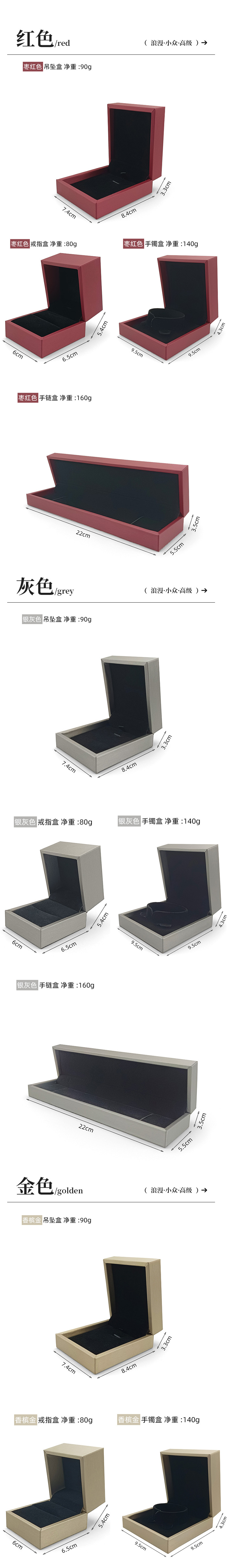 Specifications and models: Gray ring box; can be customized with gold inside and white inside + logo