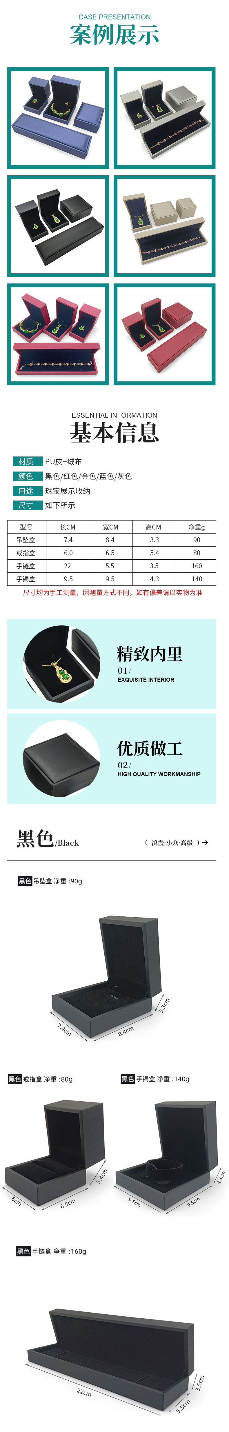 Specifications and models: Black bracelet box; can be personalized with gold inside and white inside + logo