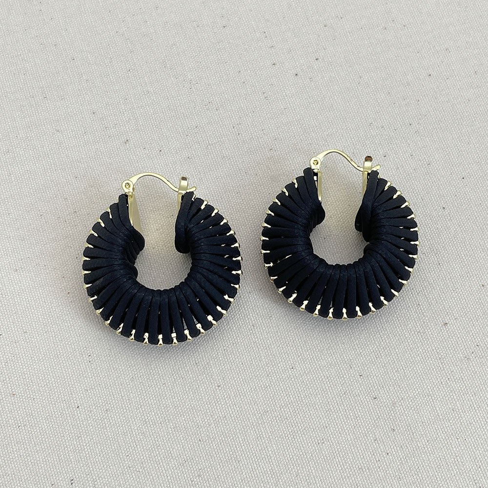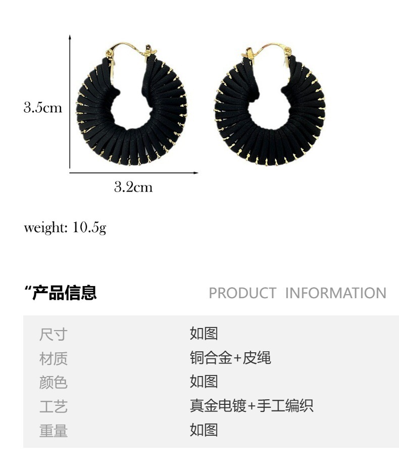 European and American Leather Woven Round Drum-shaped Earrings Women's Vintage Three-dimensional Round Ear Buckle Ear Ring Commuting All-match Ear Jewelry
