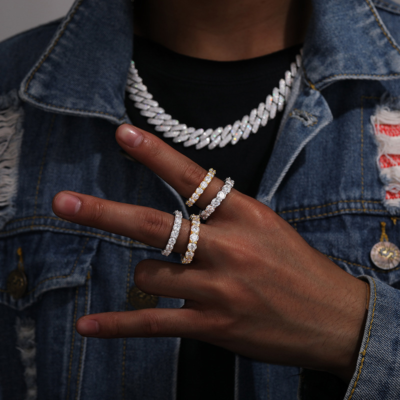 Amazon Cross-border European and American Hip Hop Style Inlaid Ring Single Row 4MM Main Stone High-end Fashion Couple Ring
