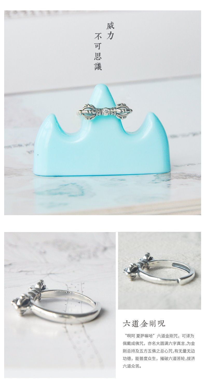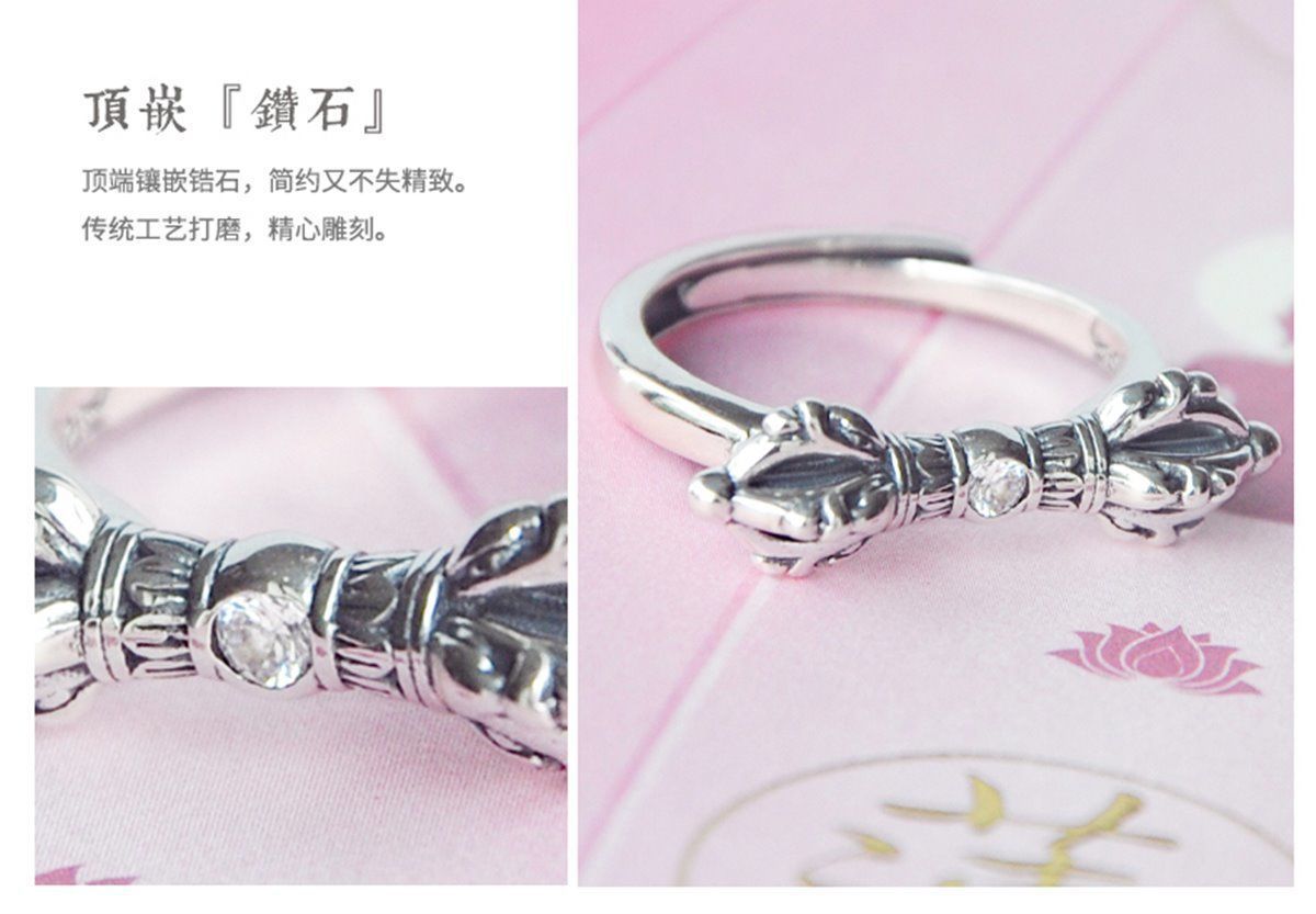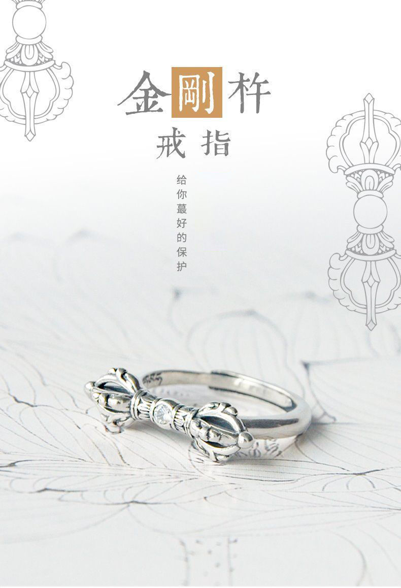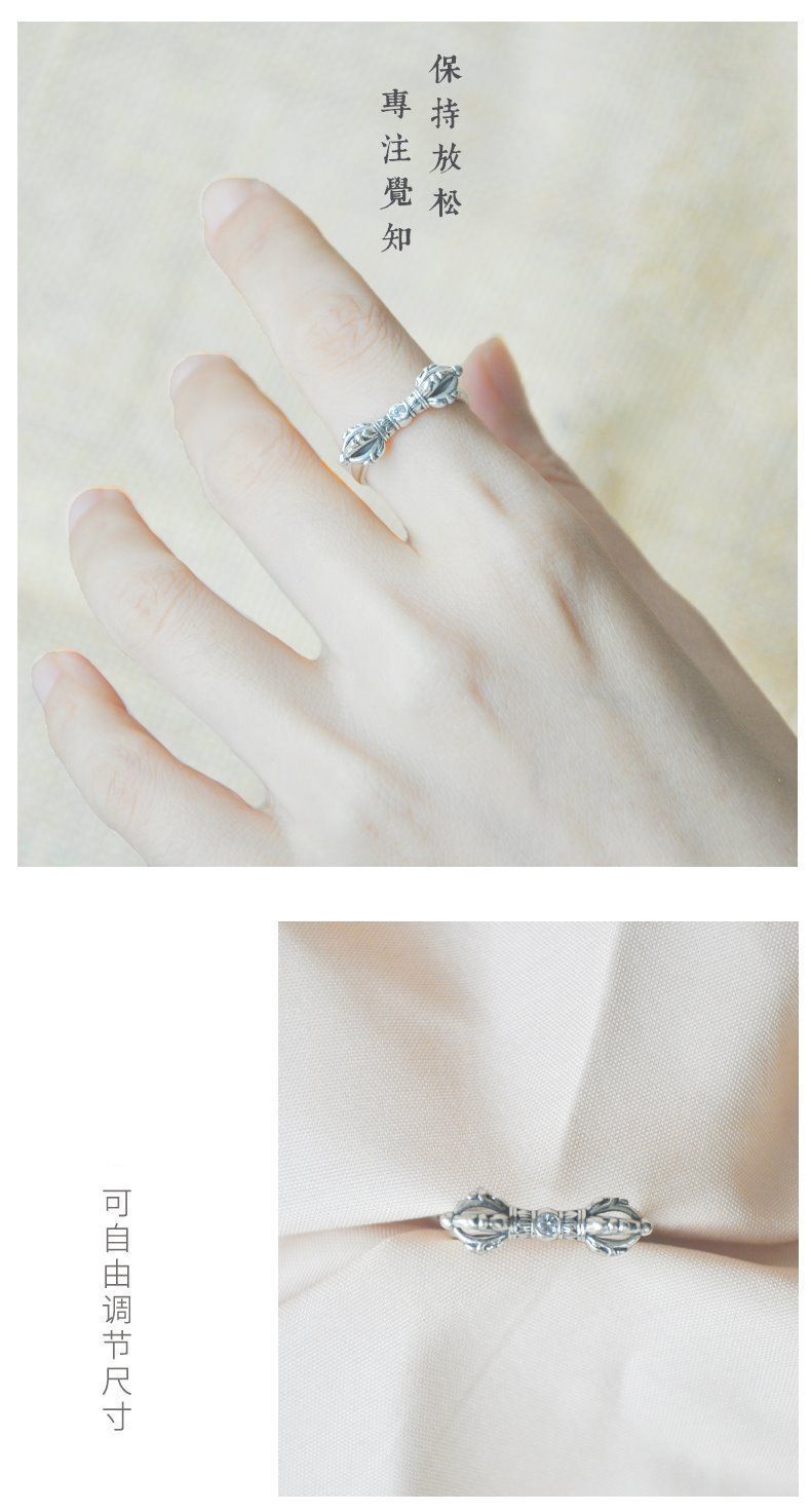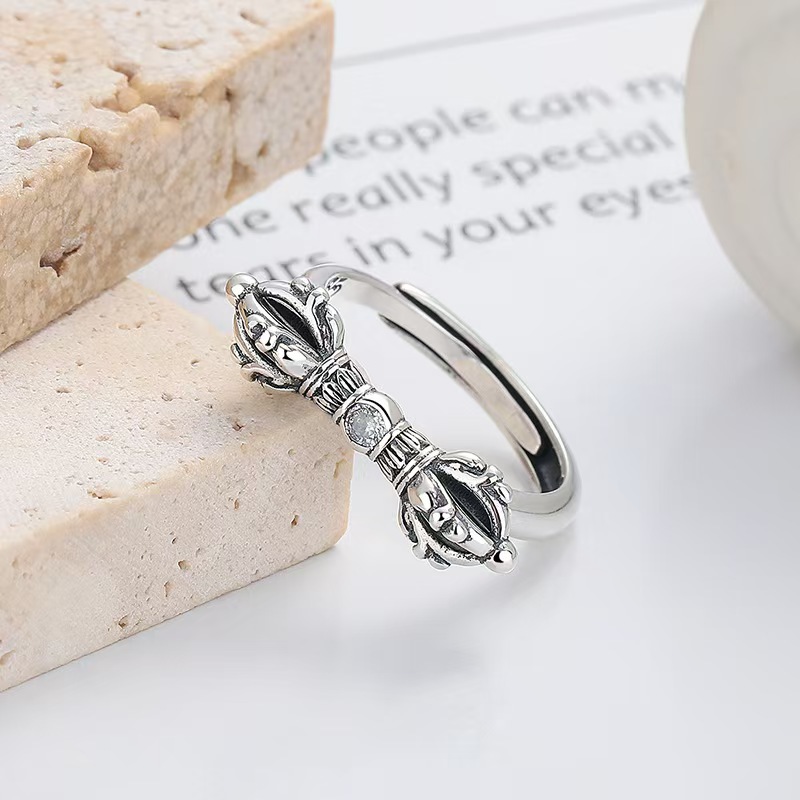 Advanced Personality Vajra Pestle Men's and Women's Xizang Dharma Device Design Old Thai Silver Retro Opening Ring