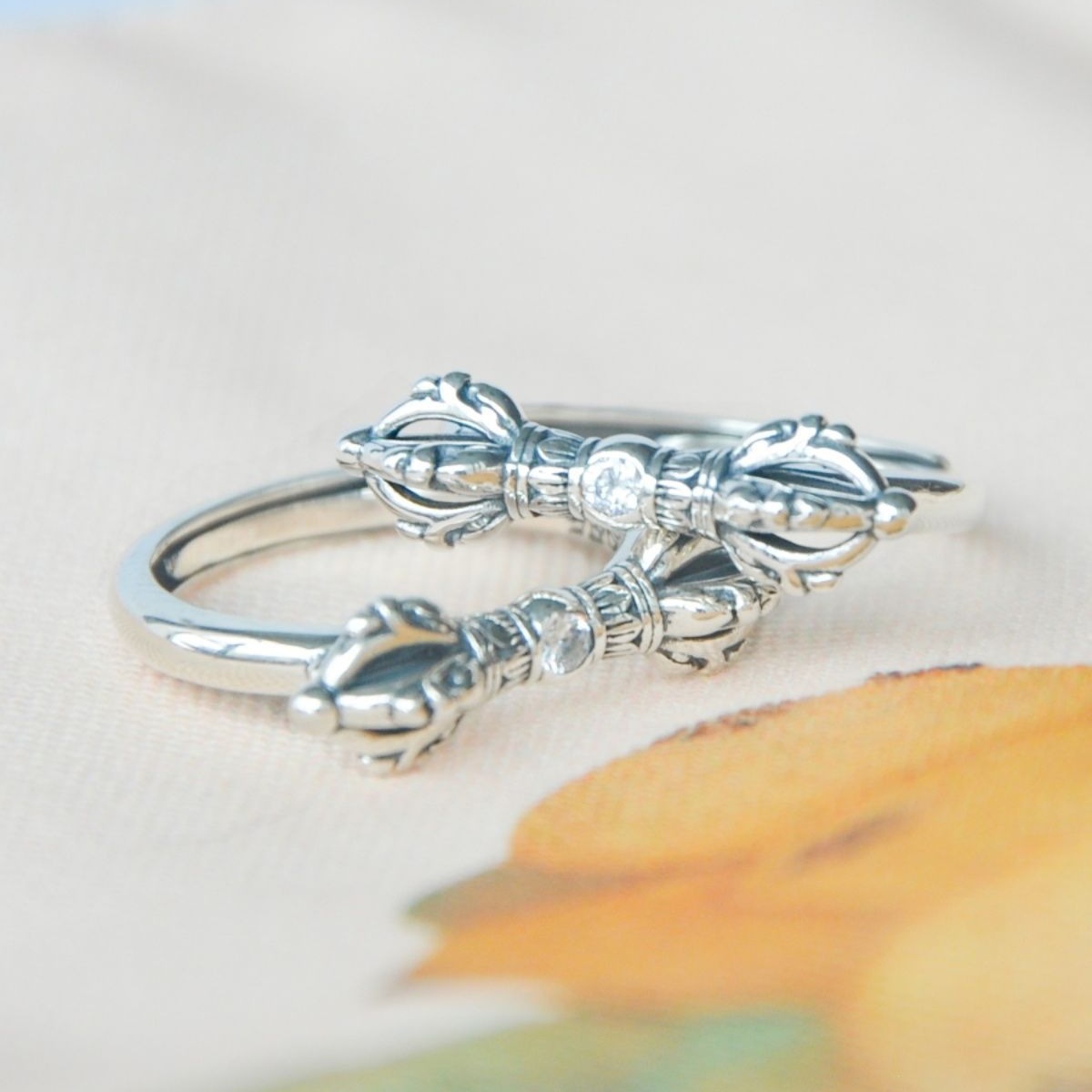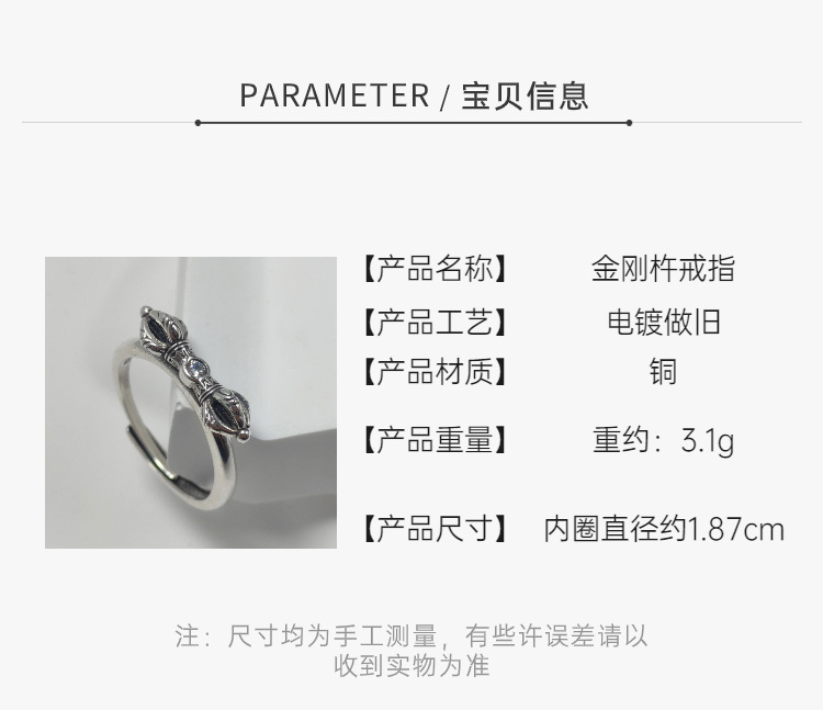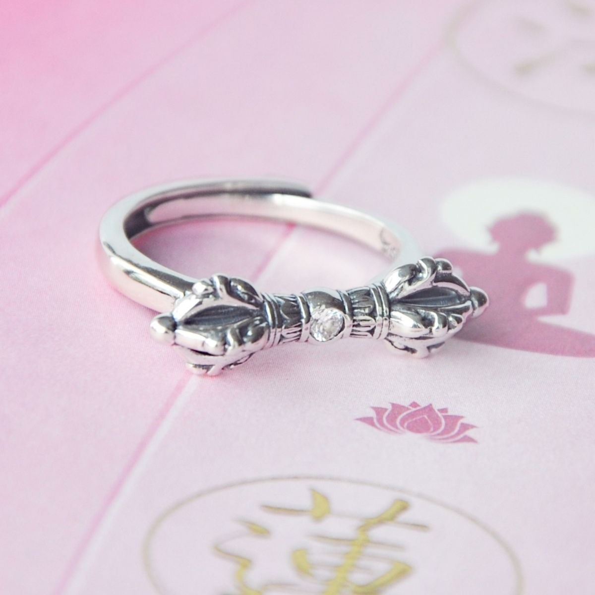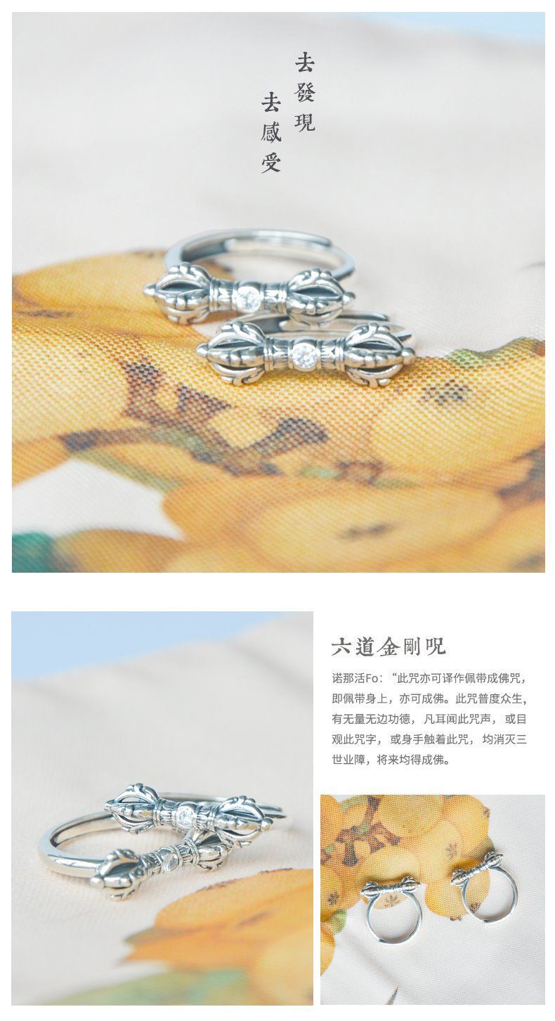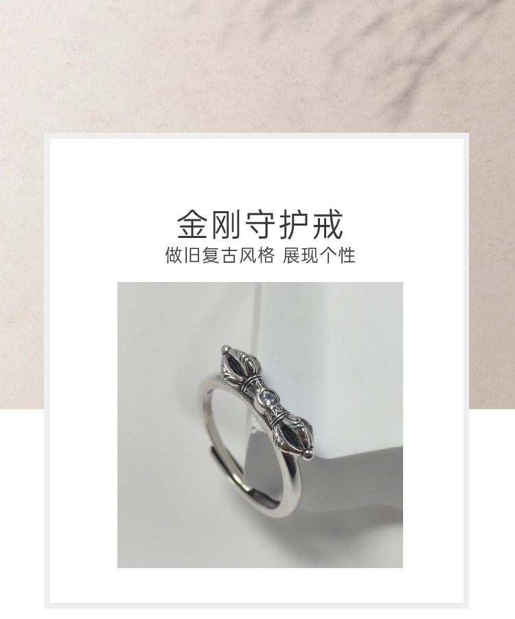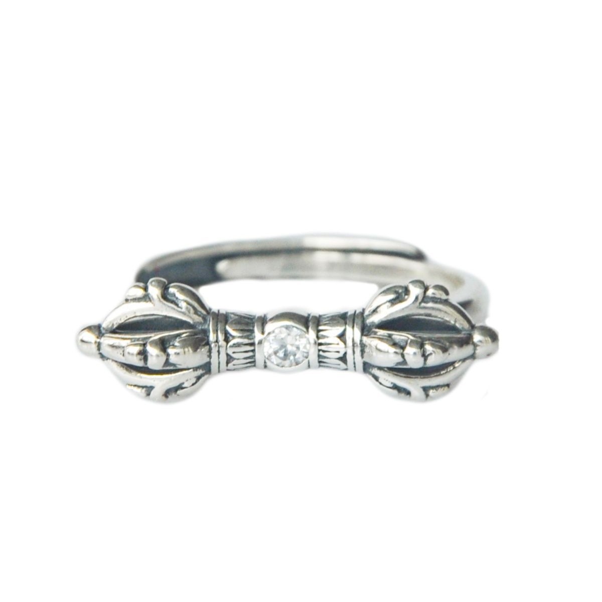 Advanced Personality Vajra Pestle Men's and Women's Xizang Dharma Device Design Old Thai Silver Retro Opening Ring