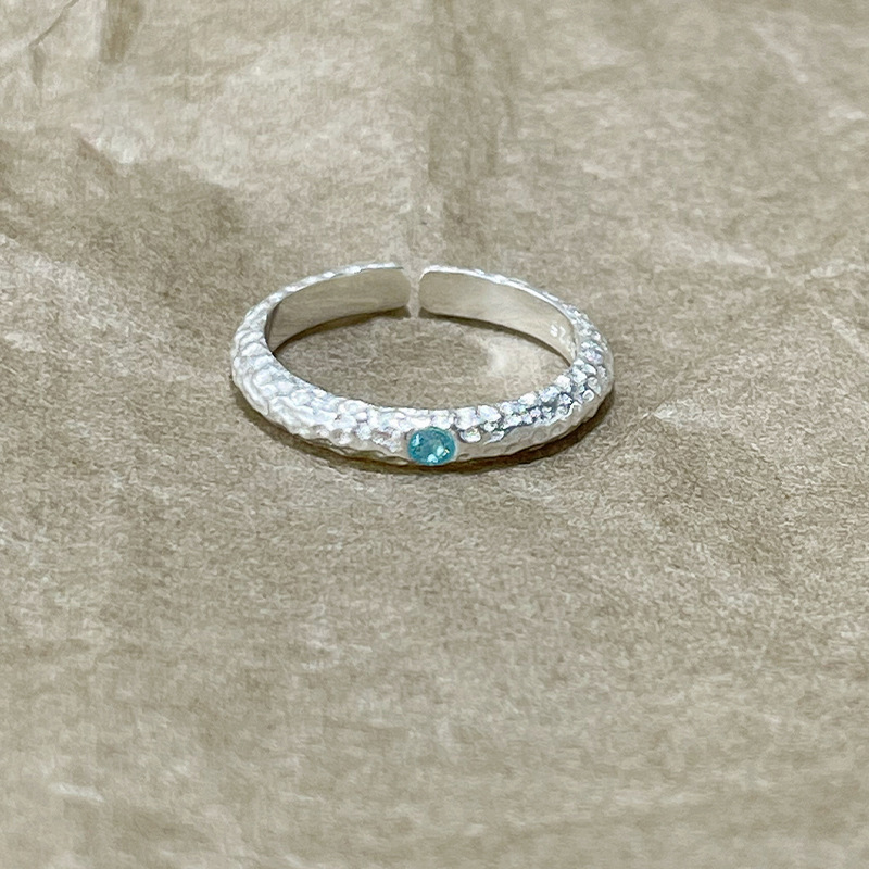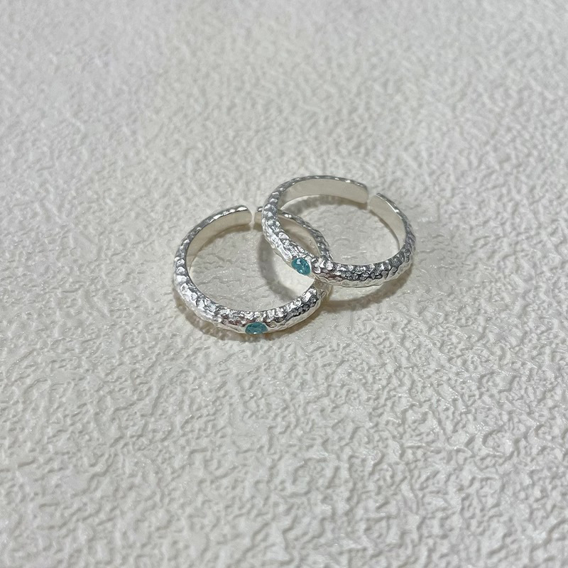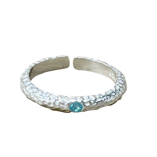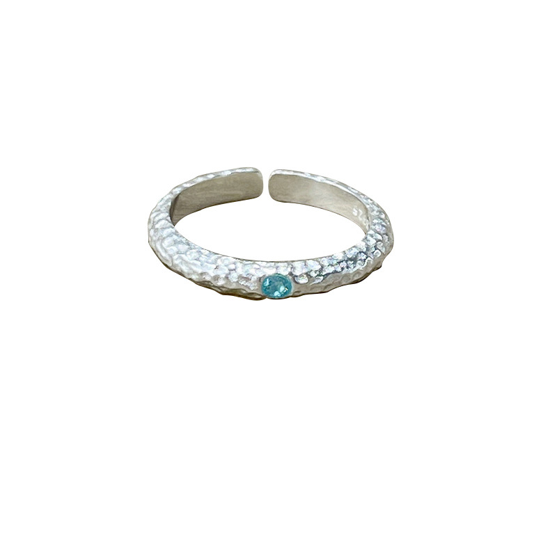 Brushed aquamarine zircon ring women's opening adjustable tail ring niche design high-end fashion all-match jewelry