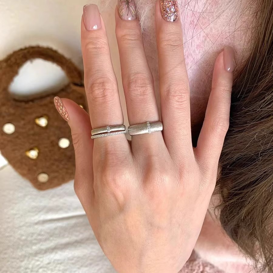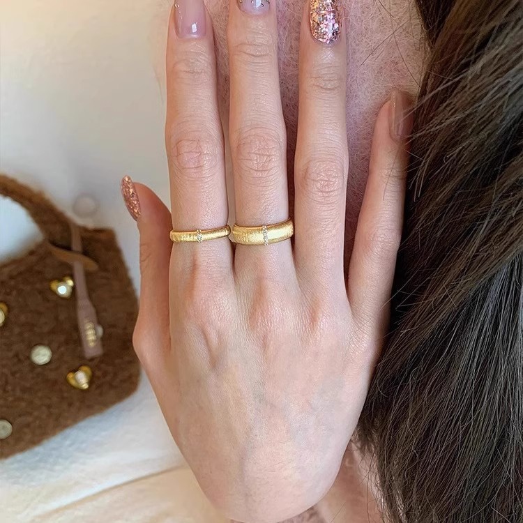 brushed metal plain ring ring women's light luxury high-end niche design finger ring 2024 new student ring