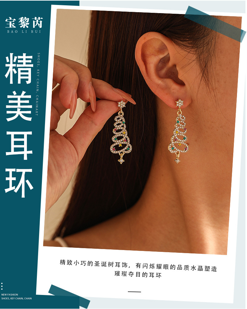 European and American Fashion Colorfulful Christmas Tree Earrings for Women Ins Niche Versatile High-End Earrings Accessible Luxury Earrings Jewelry