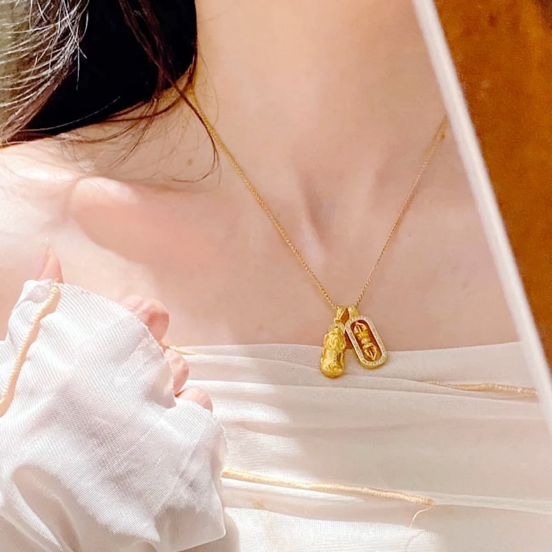 Temperament: Accessible luxury weixue's same high-quality pixiu vajra necklace for men and women's sand gold high color-preserving magma pestle full diamond pendant