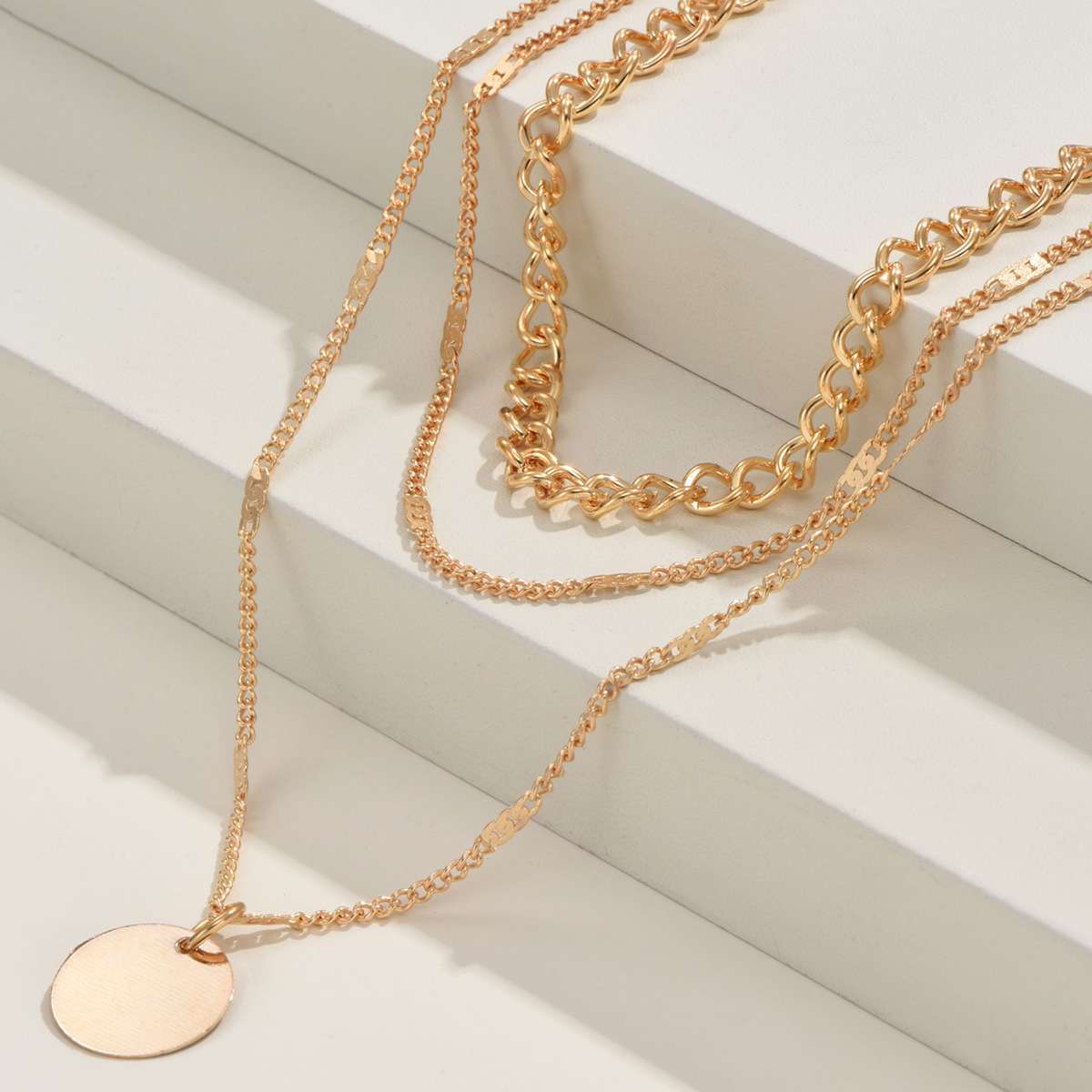 Necklace Cross-border Women's Light Luxury Niche Geometric Pendant All-match High-end Sense Overlapped Gender-free Jewelry Yiwu Jewelry Factory