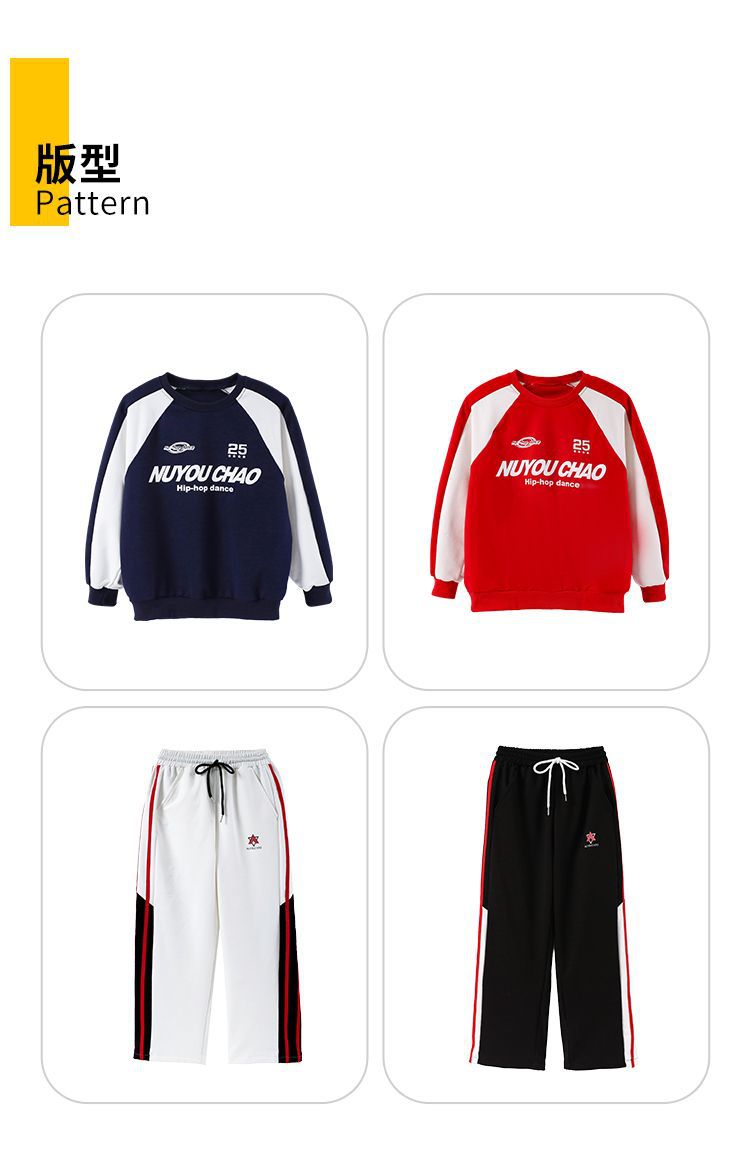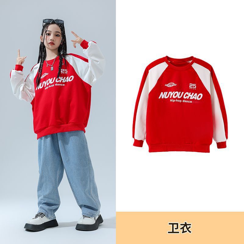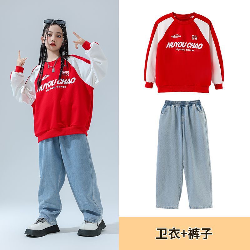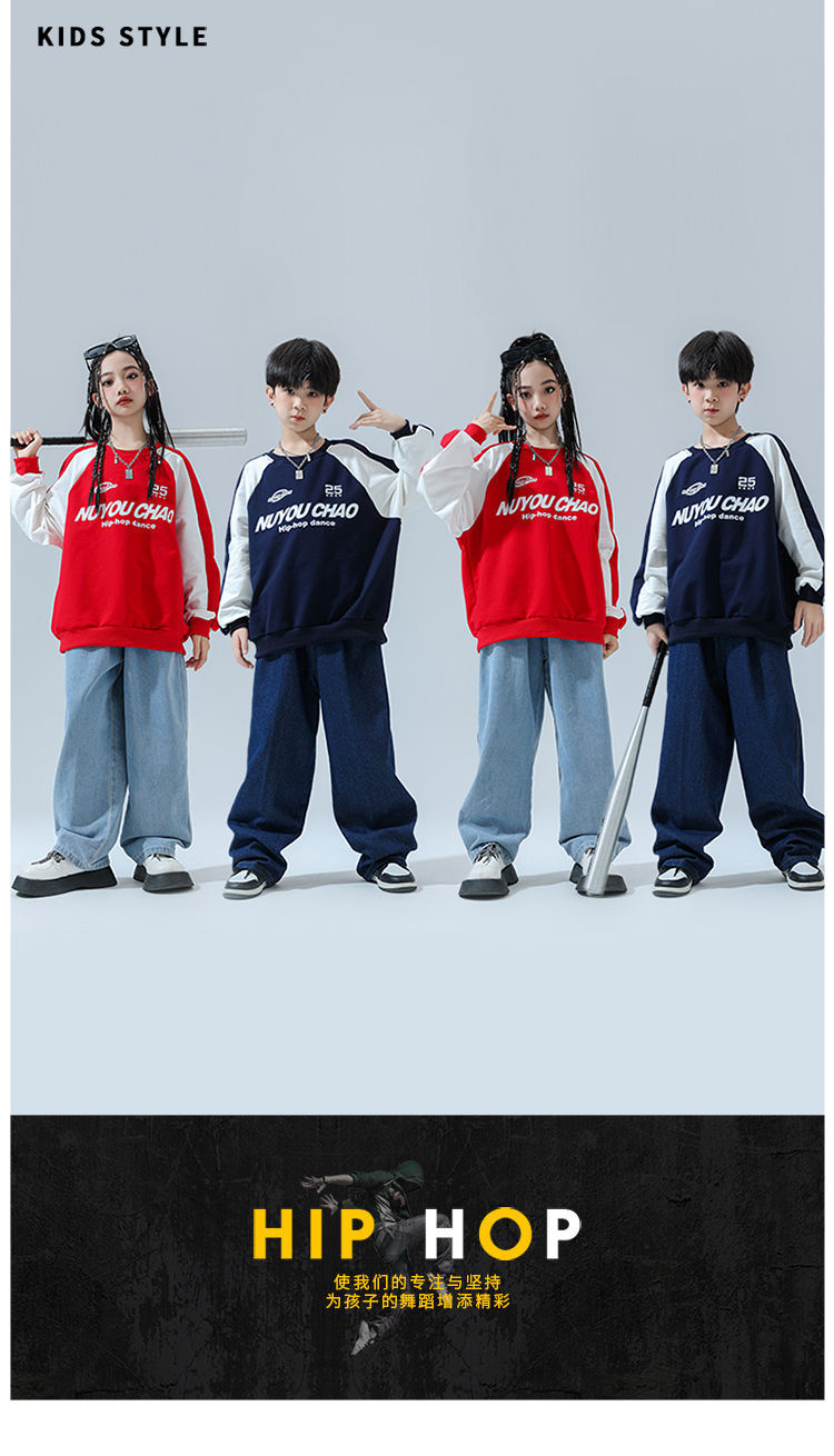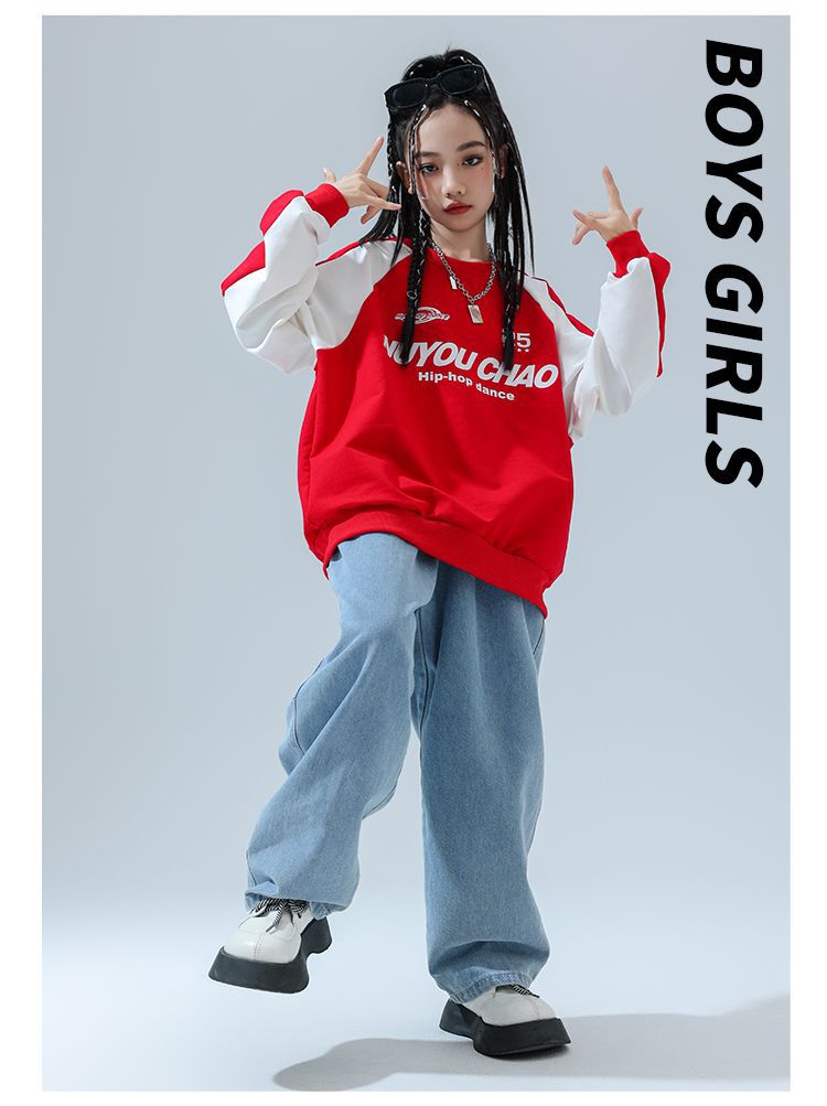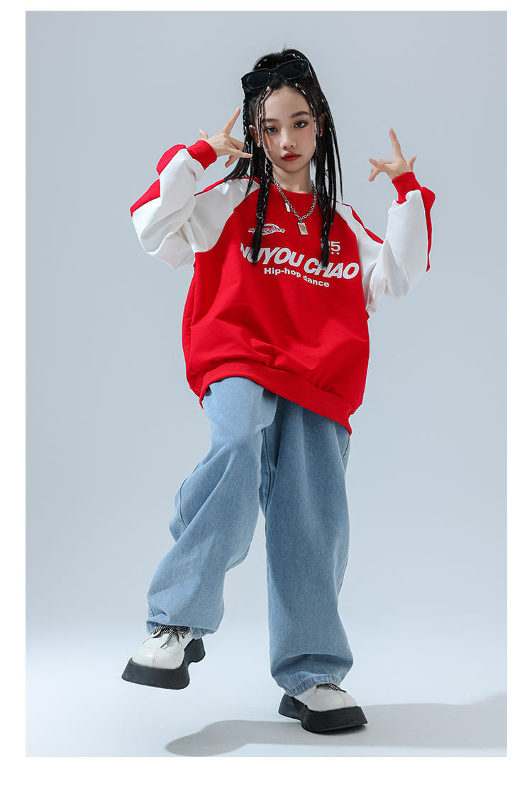 Color: 820 red sweatshirt + 810 light color denim trousers