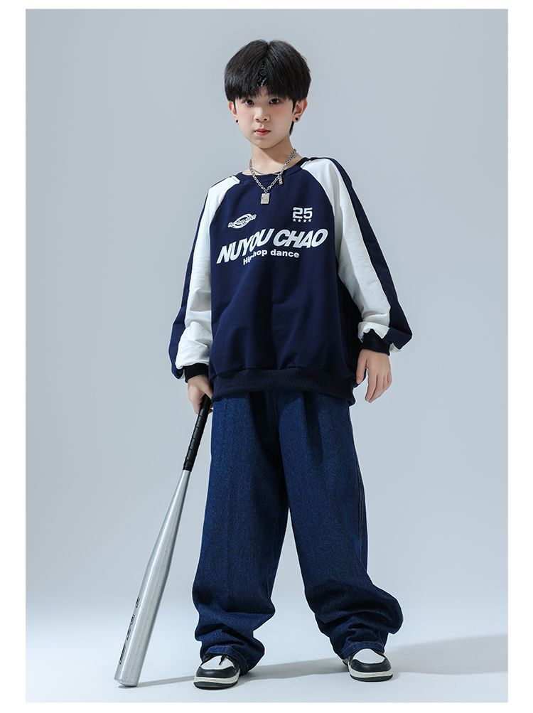 Color: 820 navy blue sweatshirt + 810 dark blue denim trousers