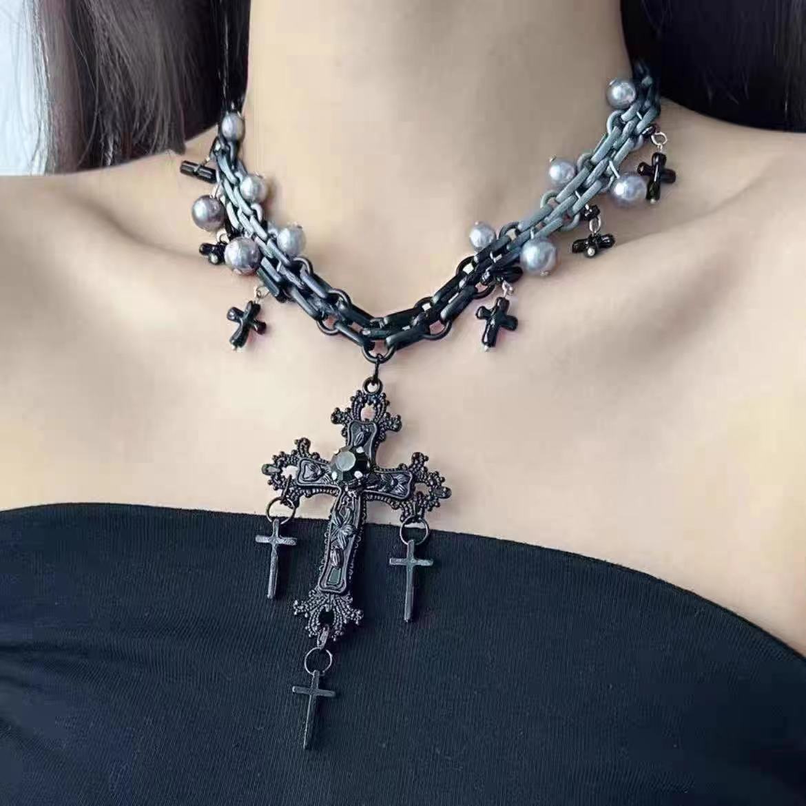 Color: Multi-layered cross necklace x4410