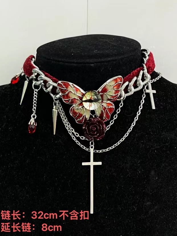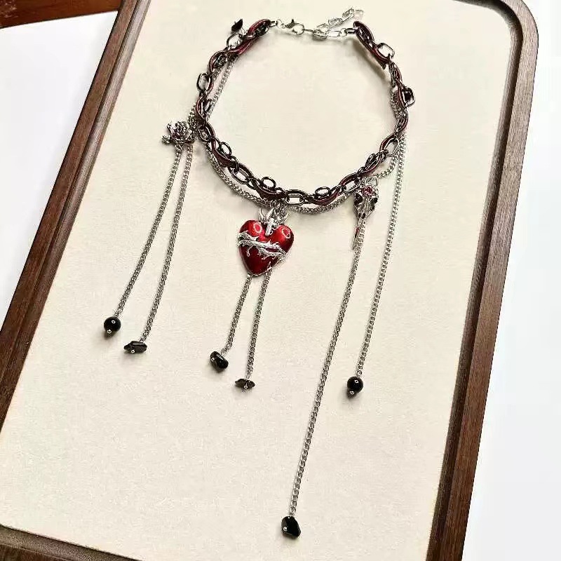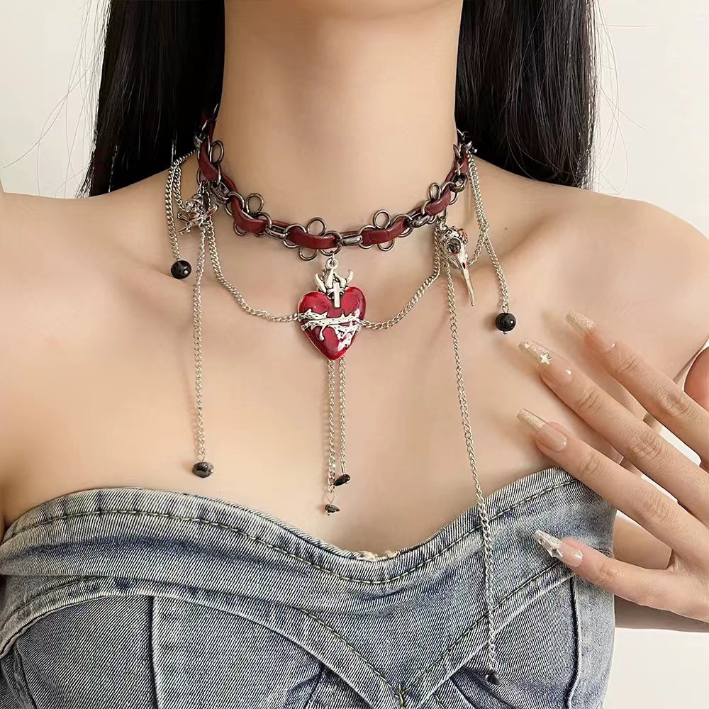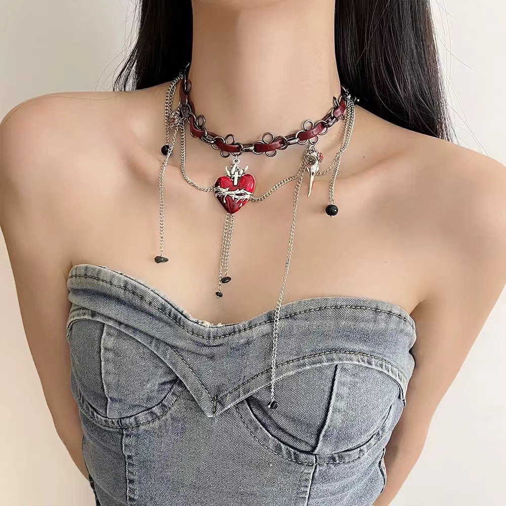 Color: Red and black spider multi-layered clavicle chain x4398