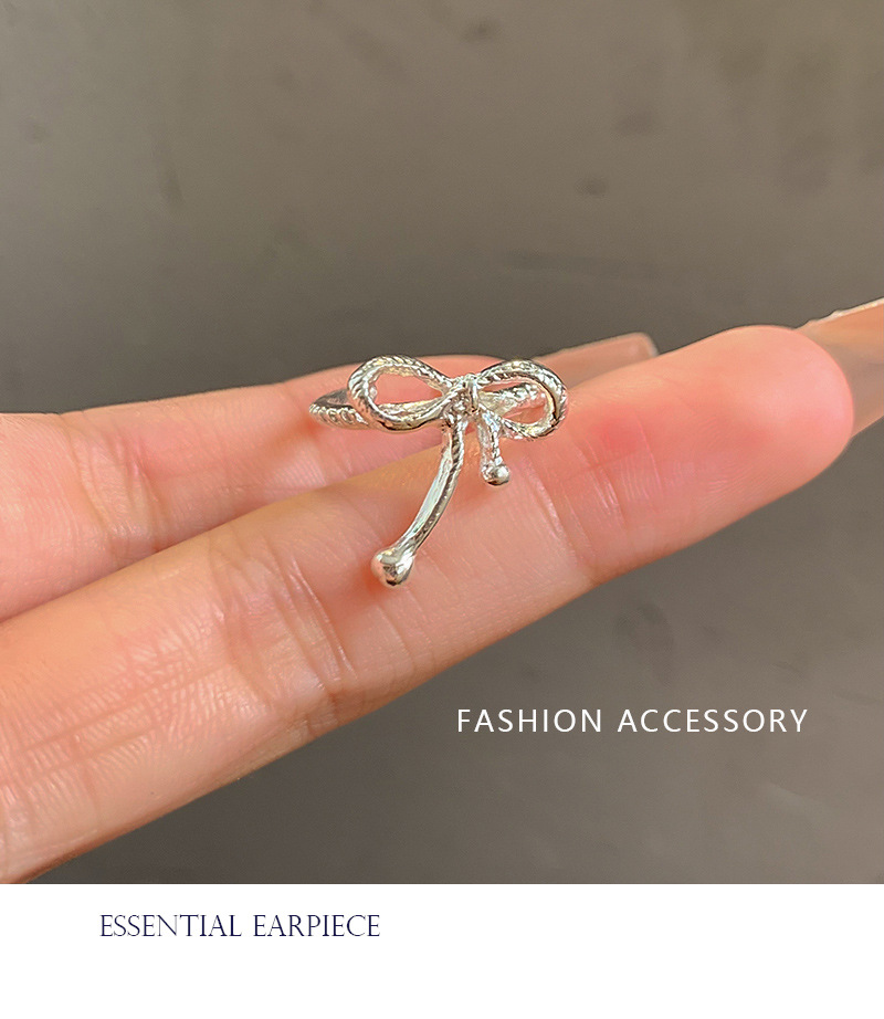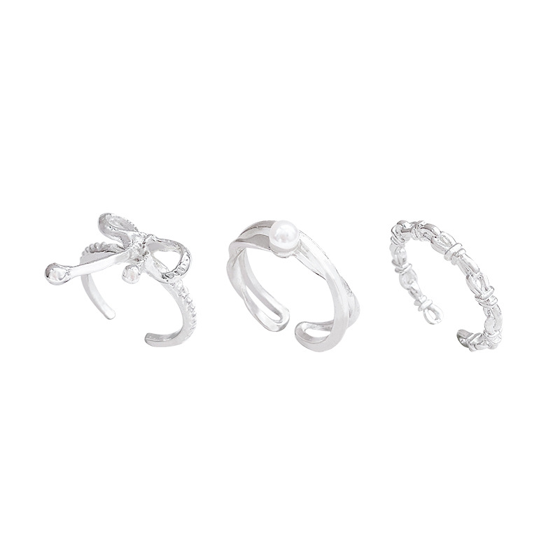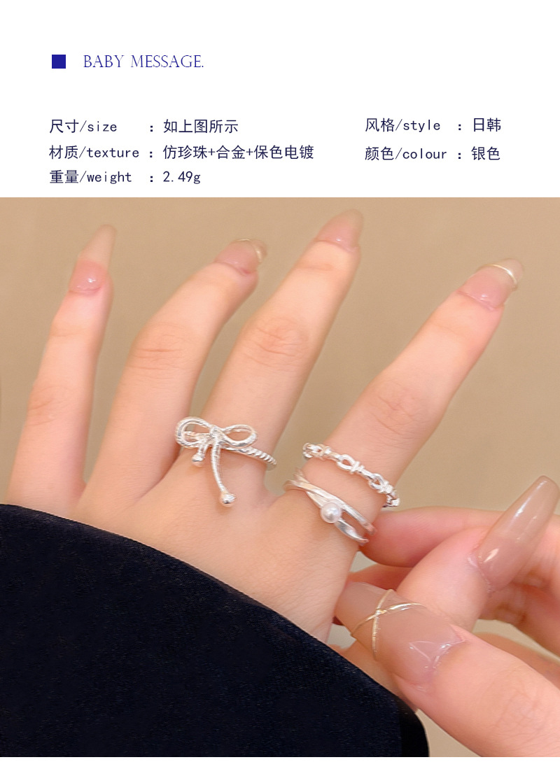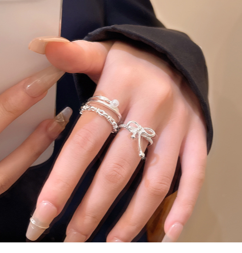 Korean Style Bow Imitation Pearl Ring Women's Light Luxury High-end Open Finger Ring Simple Niche Girl Heart Ring