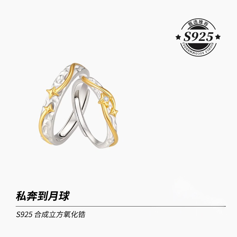 S925 Sterling Silver Lone Star Ring Men's High-end Self-discipline Light Luxury Open Ring Trendy Boyfriend Birthday Gift