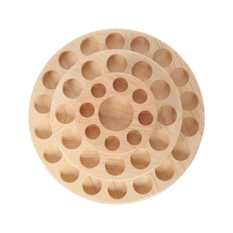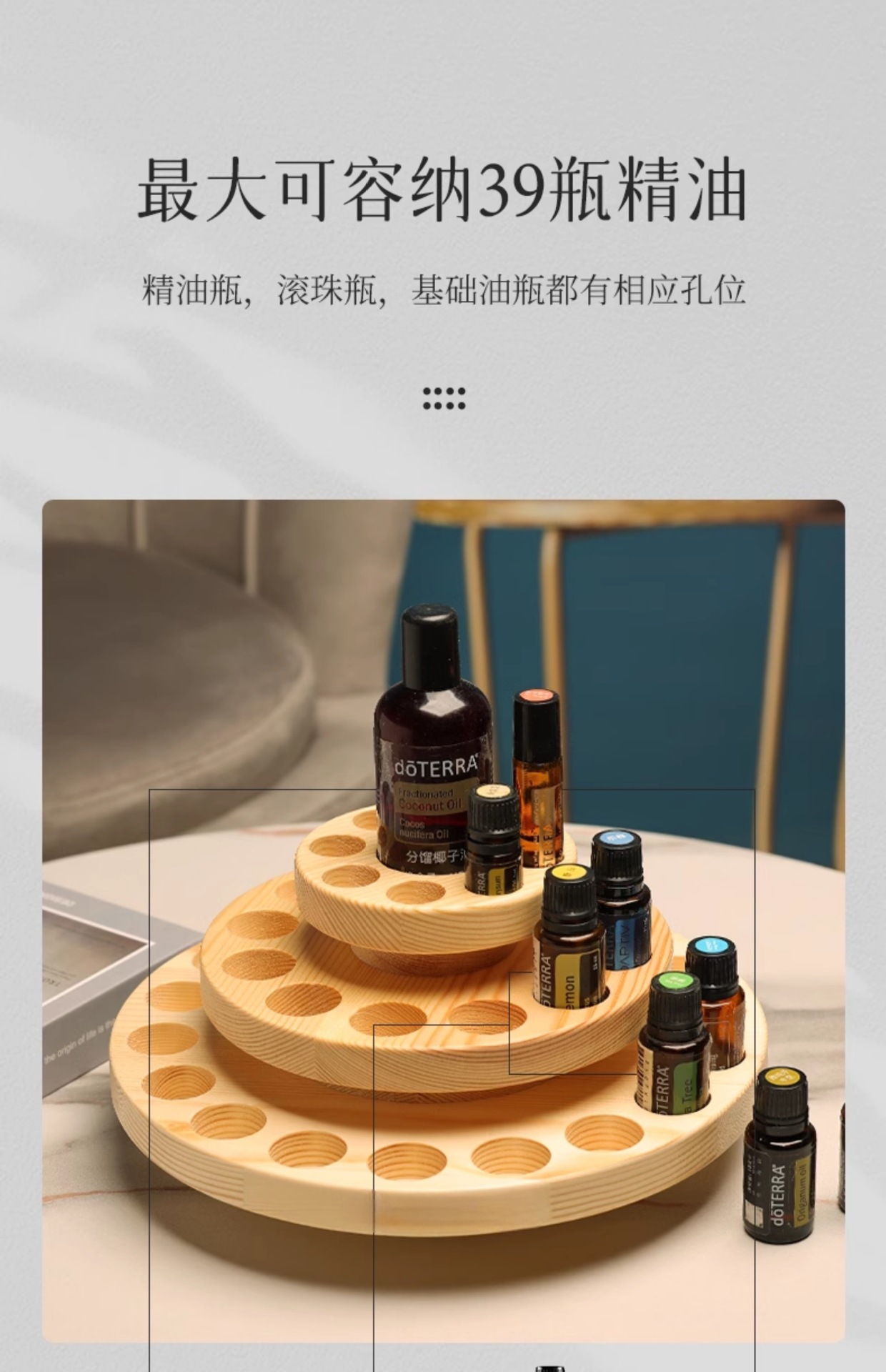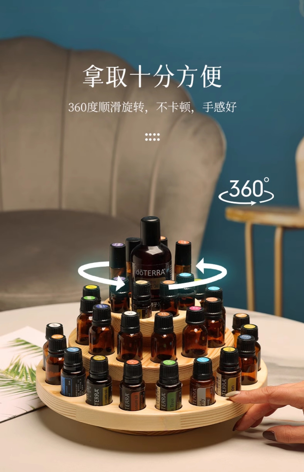 39-grid essential oil display stand 360-degree rotating three-layer solid wood bottling desktop storage display plate