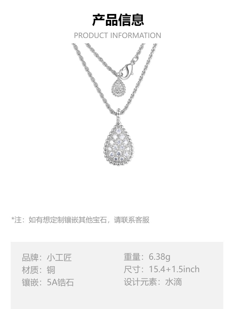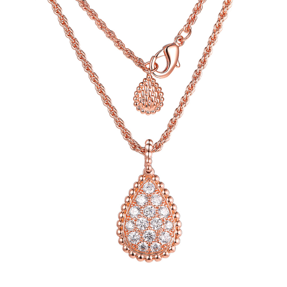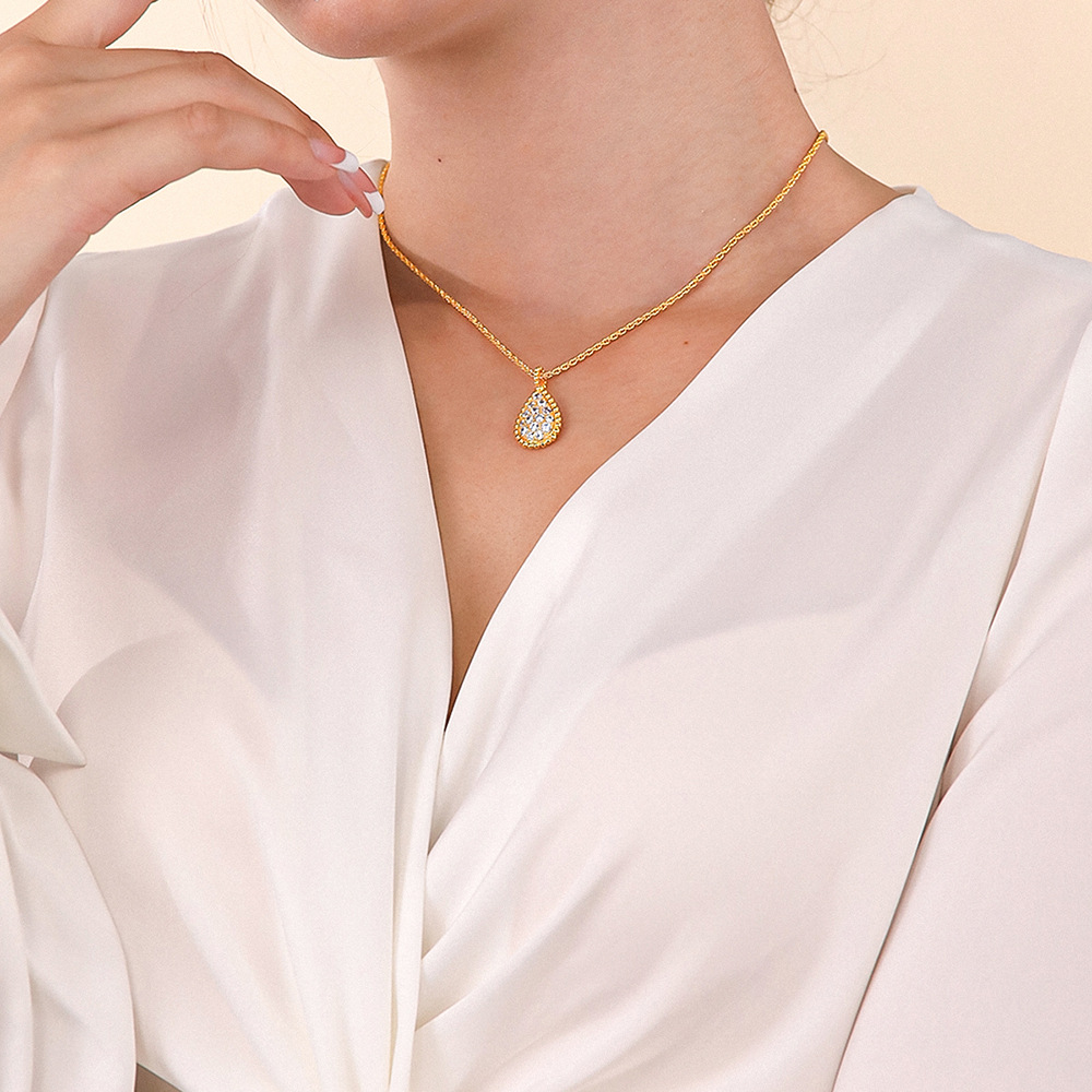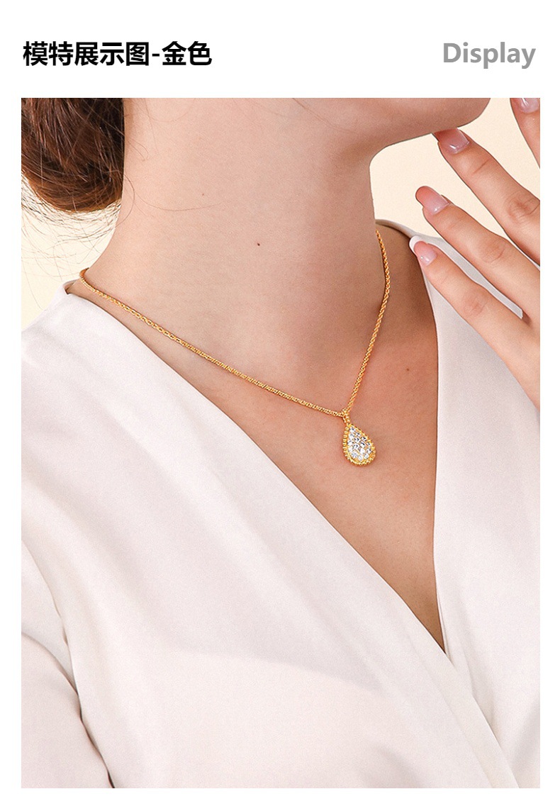 Cross-border New 5A Zircon Single Water Drop Necklace Personality Fashion Diamond Gold Silver Rose Gold Tri-color Necklace