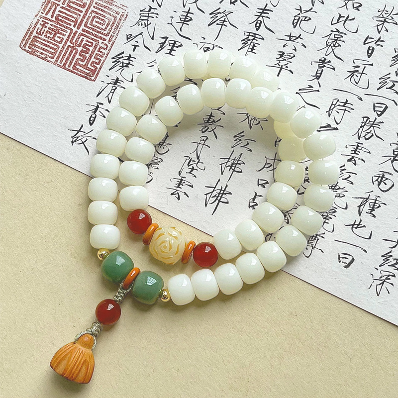 Color: White jade bodhi 10mm*19 pieces [plain ring style]