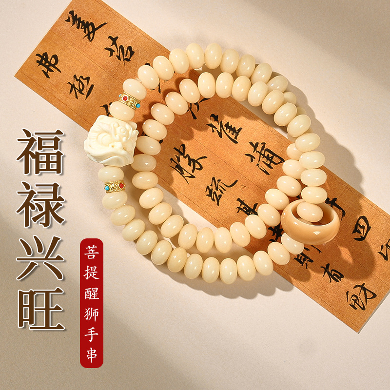 Color: Cream yellow bodhi 9*6mm double circle [awakening lion ring model]