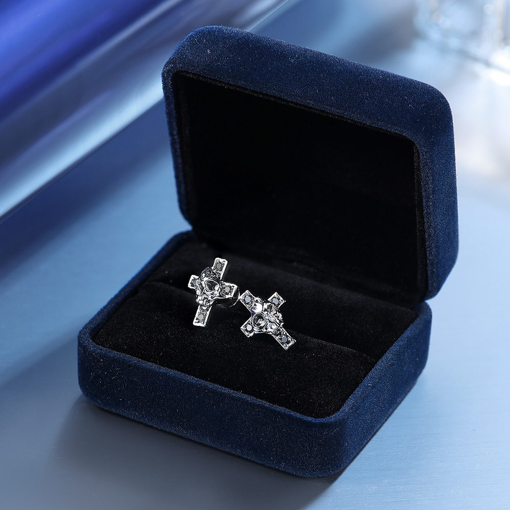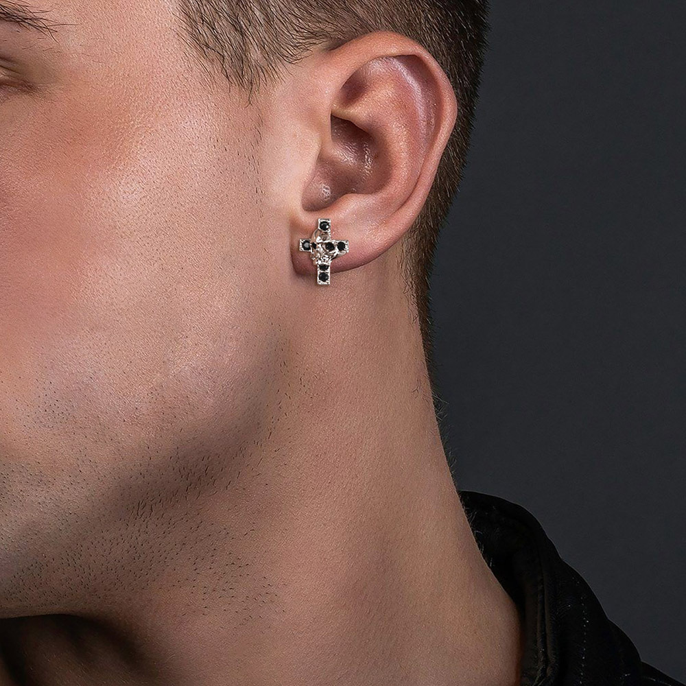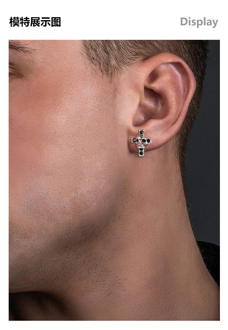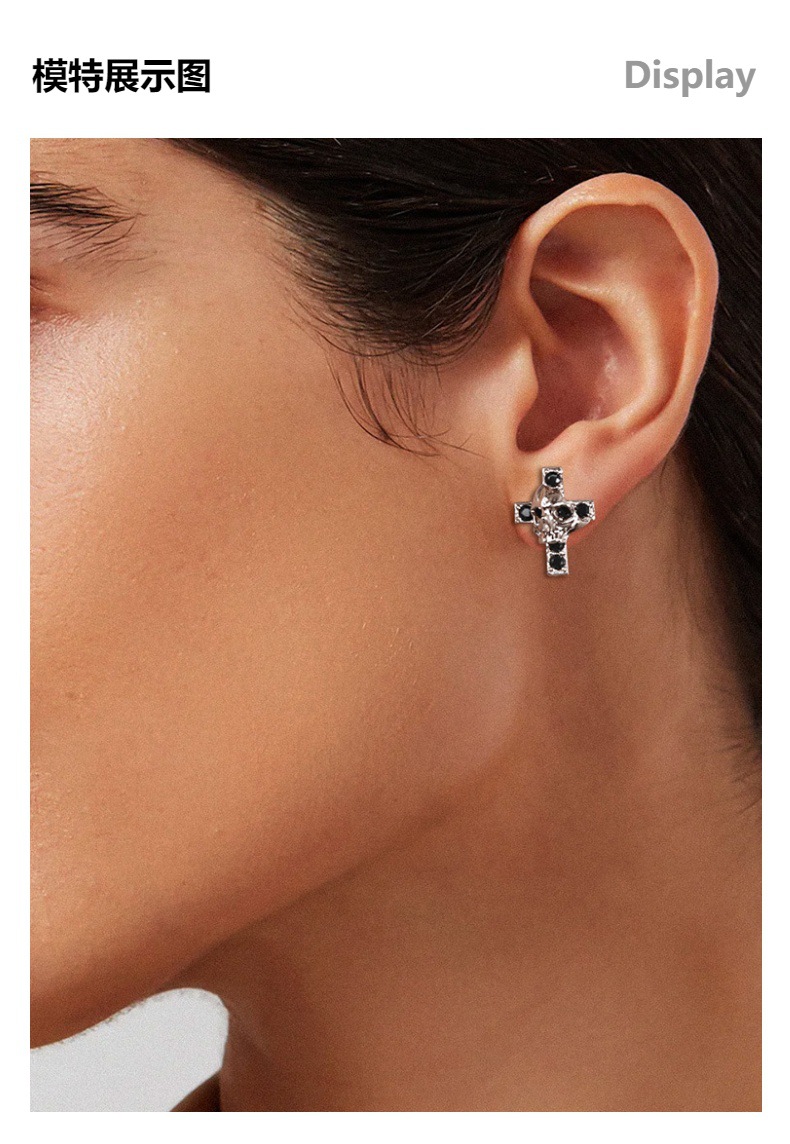 Cross-border New S925 Silver Black Moissanite Skull Cross Earrings Personalized Trendy Men's and Women's Earrings